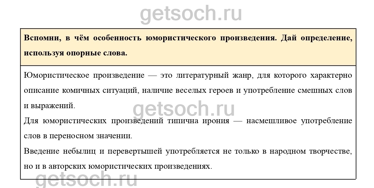 Вспомни, в чём особенность юмористического произведения. Дай определение, используя опорные слова.