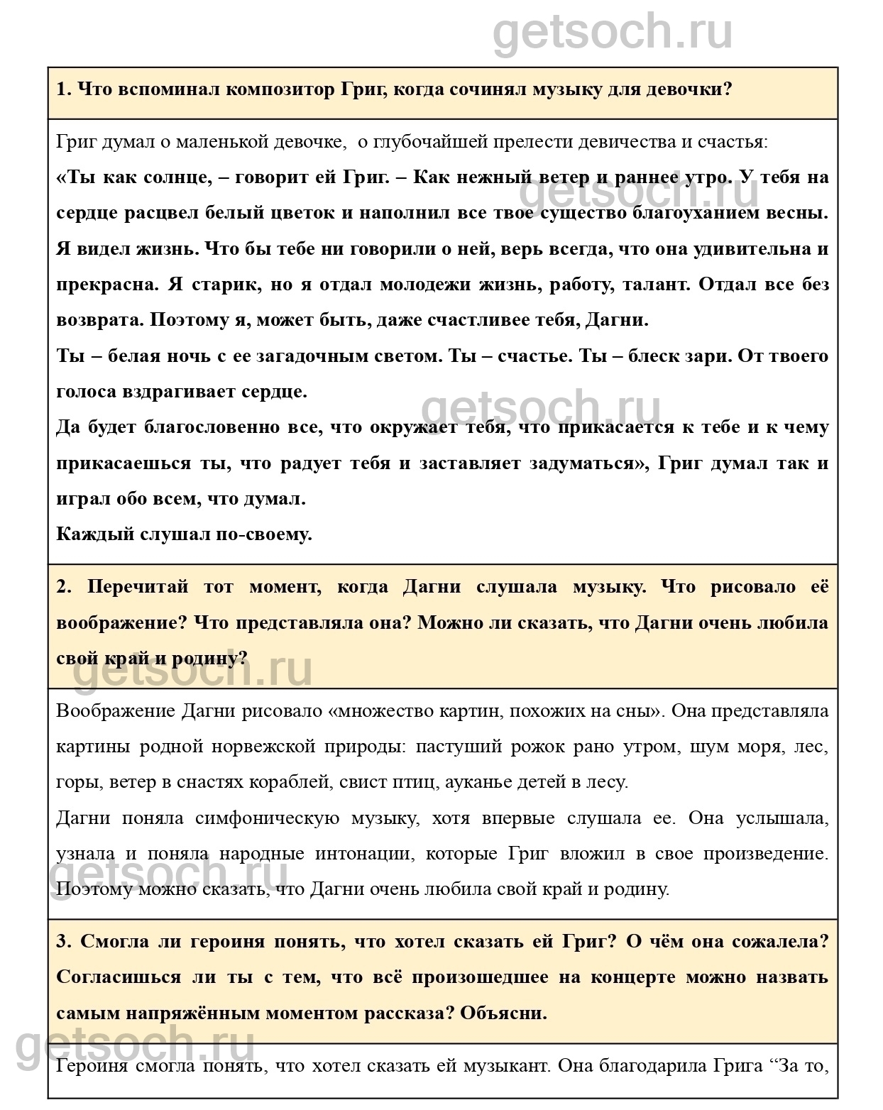 Смогла ли героиня понять, что хотел сказать ей Григ? О чём она сожалела? Согласишься ли ты с тем, что всё произошедшее на концерте можно назвать самым напряжённым моментом рассказа? Объясни.