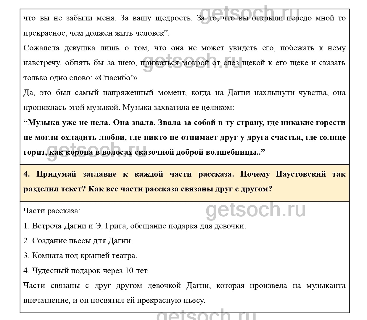 Придумай заглавие к каждой части рассказа. Почему Паустовский так разделил текст? Как все части рассказа связаны друг с другом?