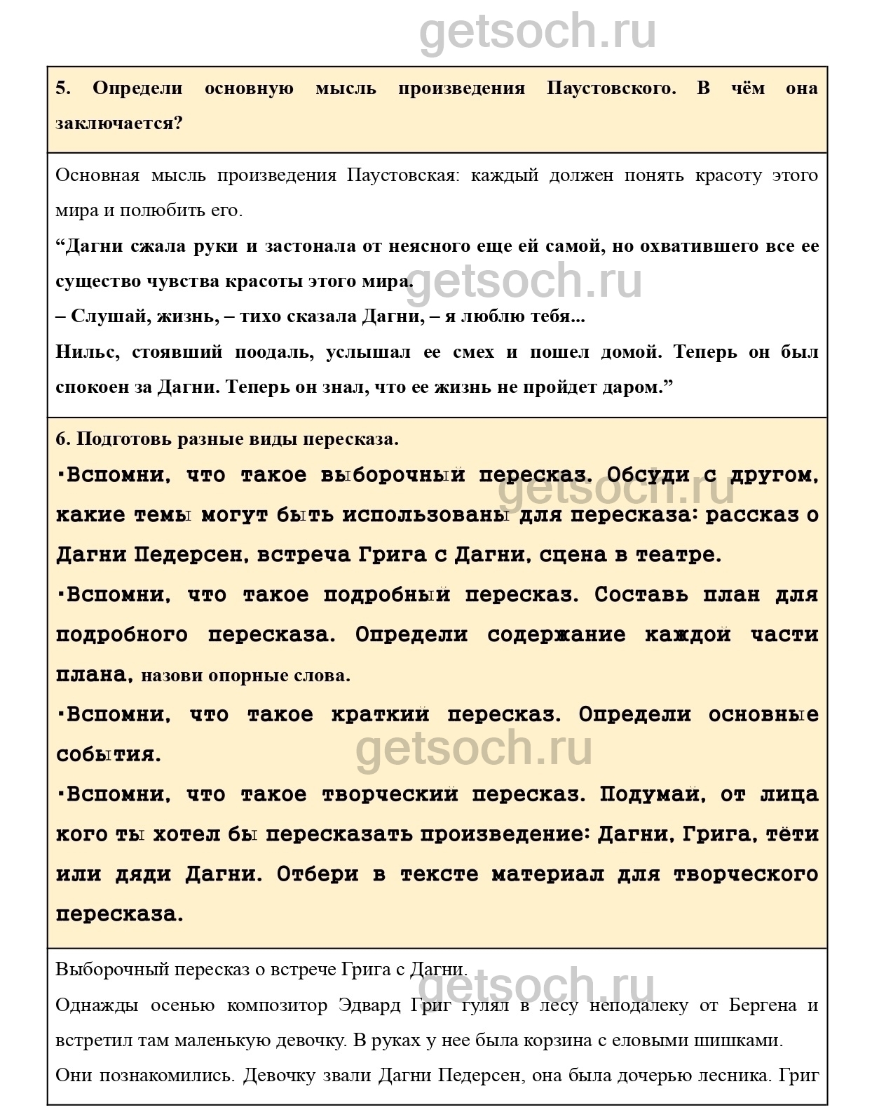 ・Вспомни, что такое творческий пересказ. Подумай, от лица кого ты хотел бы пересказать произведение: Дагни, Грига, тёти или дяди Дагни. Отбери в тексте материал для творческого пересказа.