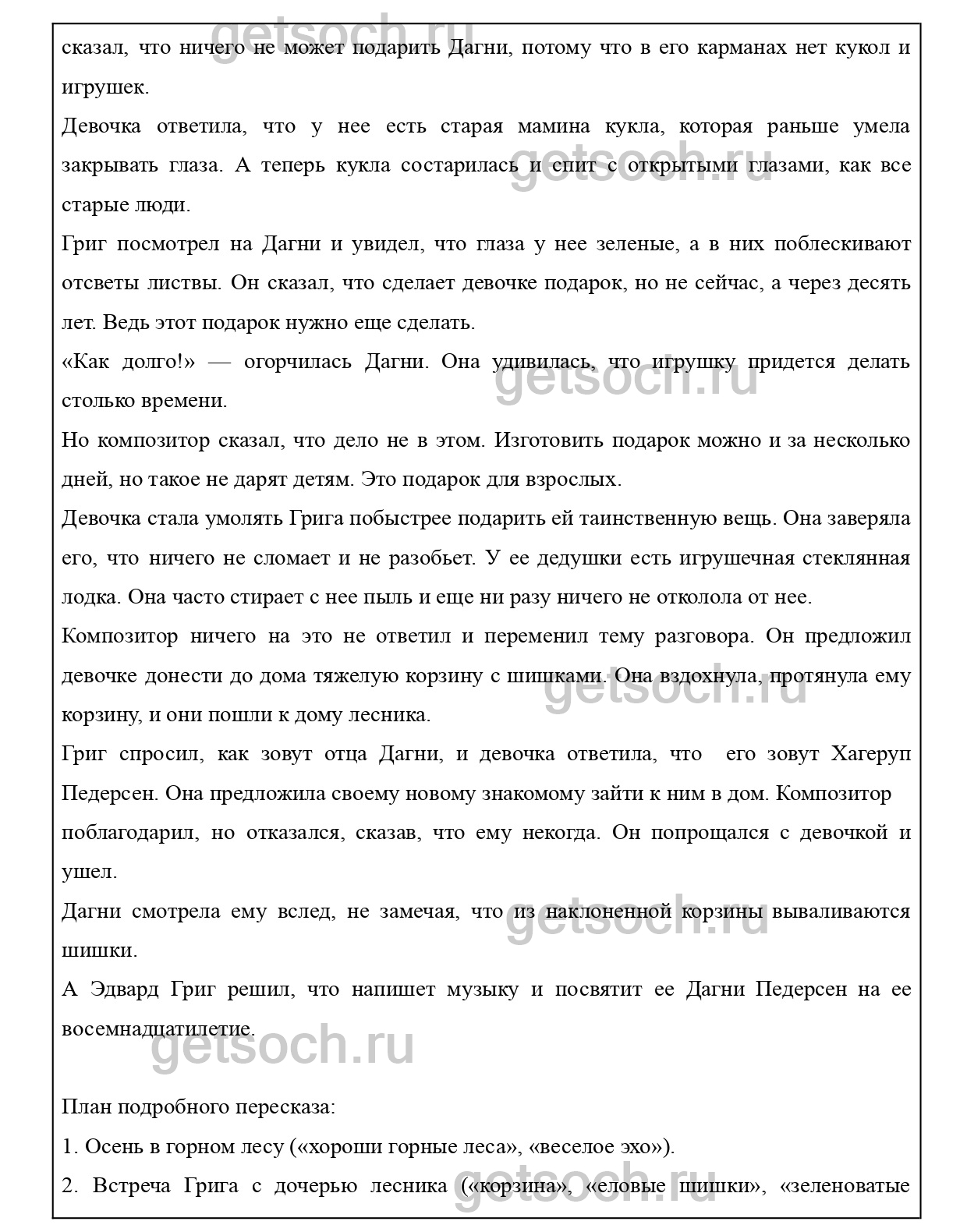 ・Вспомни, что такое выборочный пересказ. Обсуди с другом, какие темы могут быть использованы для пересказа: рассказ о Дагни Педерсен, встреча Грига с Дагни, сцена в театре.