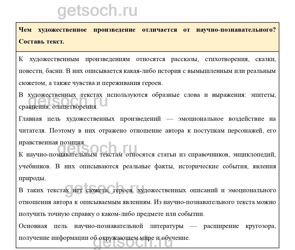Чем художественное произведение отличается от научно-познавательного? Составь текст.