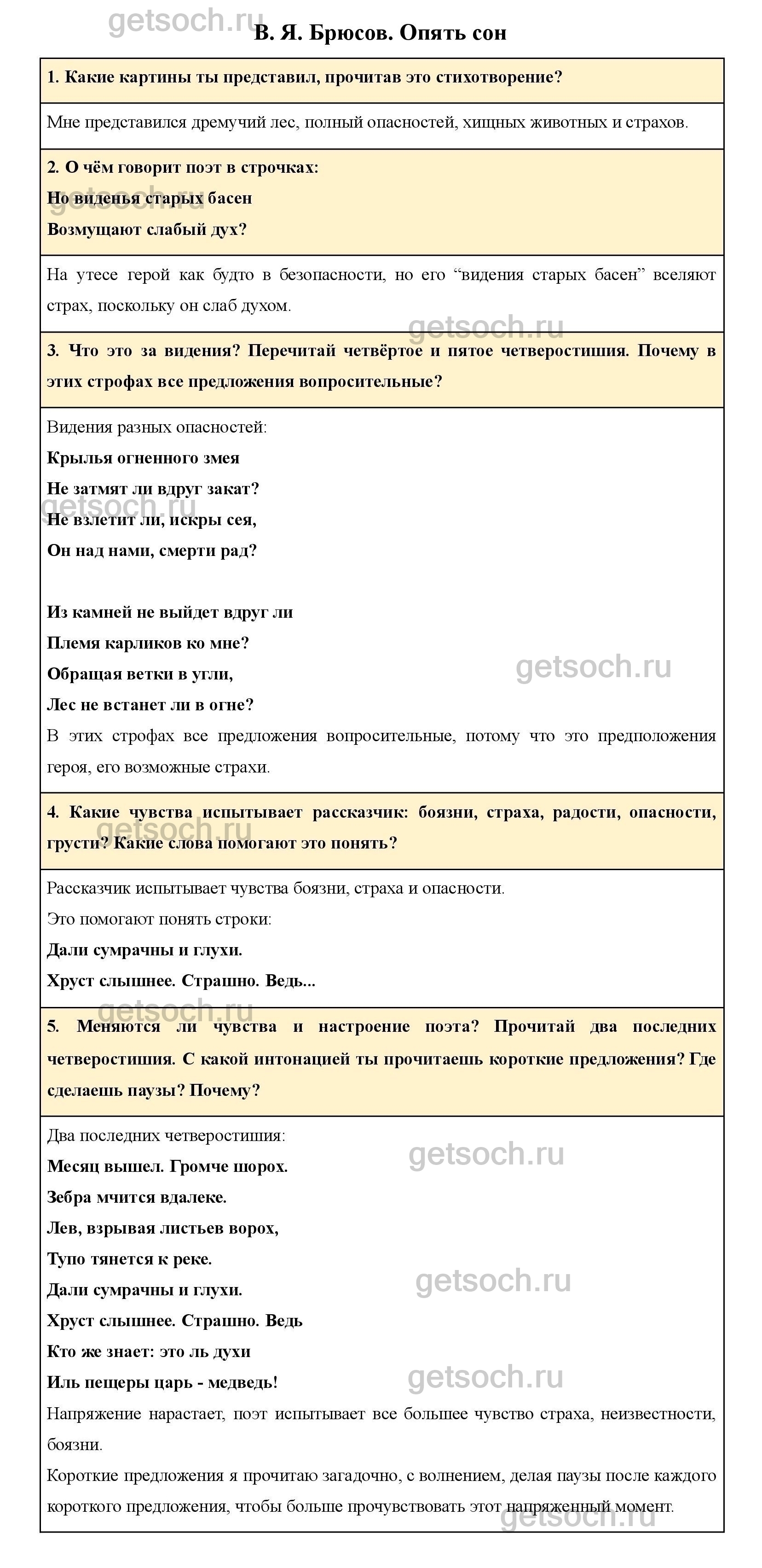 Меняются ли чувства и настроение поэта? Прочитай два последних четверостишия. С какой интонацией ты прочитаешь короткие предложения? Где сделаешь паузы? Почему?