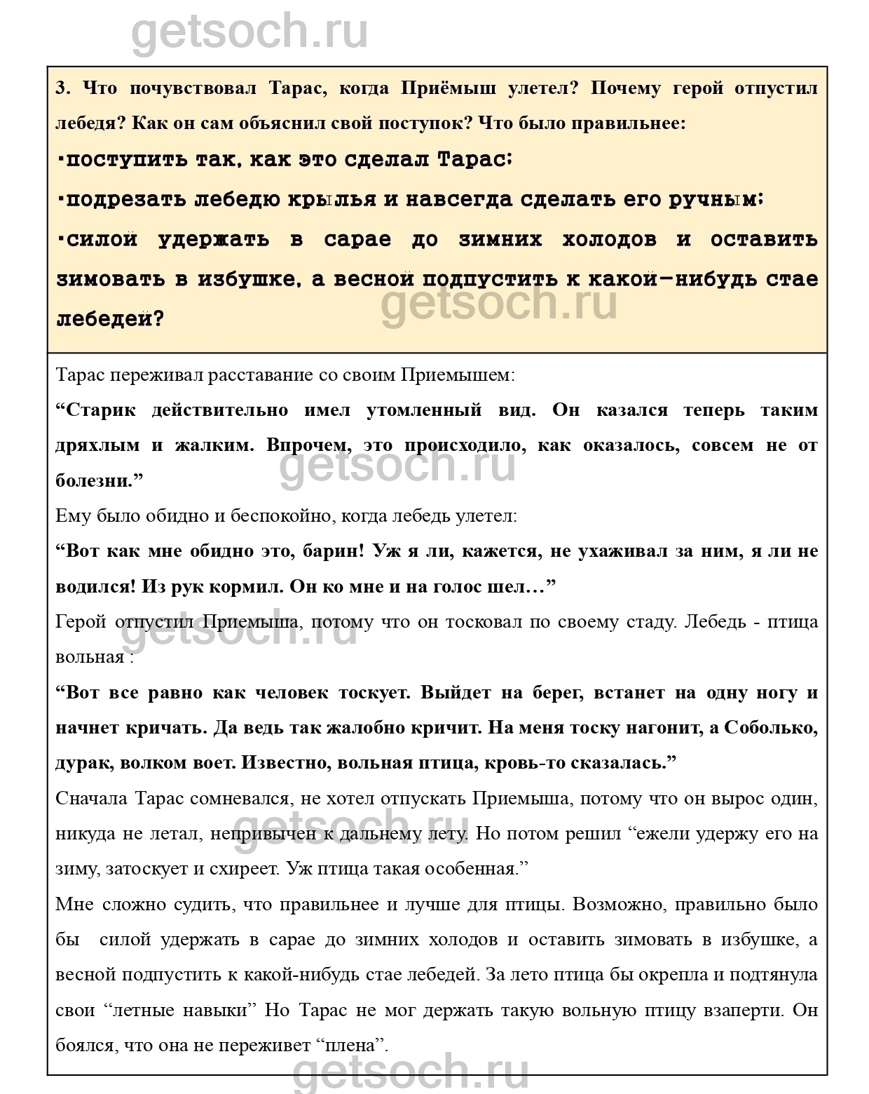 Что почувствовал Тарас, когда Приёмыш улетел? Почему герой отпустил лебедя? Как он сам объяснил свой поступок? Что было правильнее: