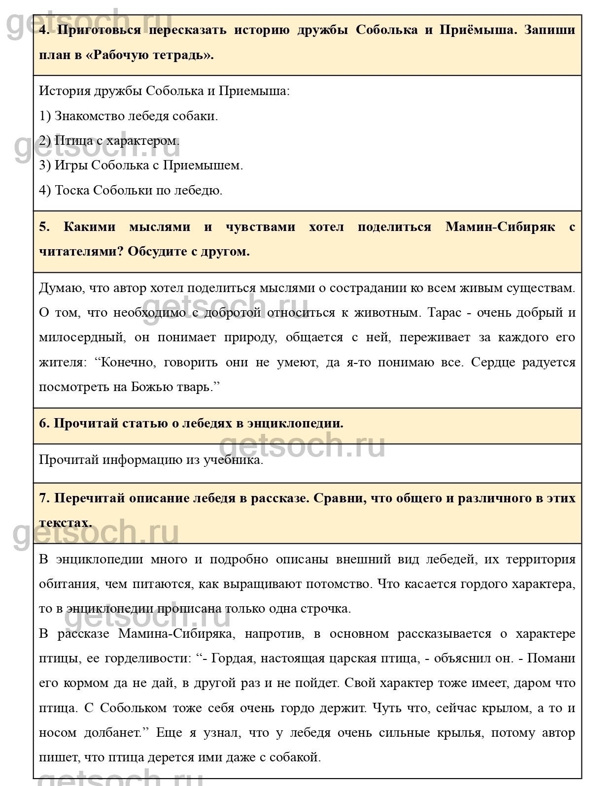 ・силой удержать в сарае до зимних холодов и оставить зимовать в избушке, а весной подпустить к какой-нибудь стае лебедей? Приготовься пересказать историю дружбы Соболька и Приёмыша. Запиши план в «Рабочую тетрадь».