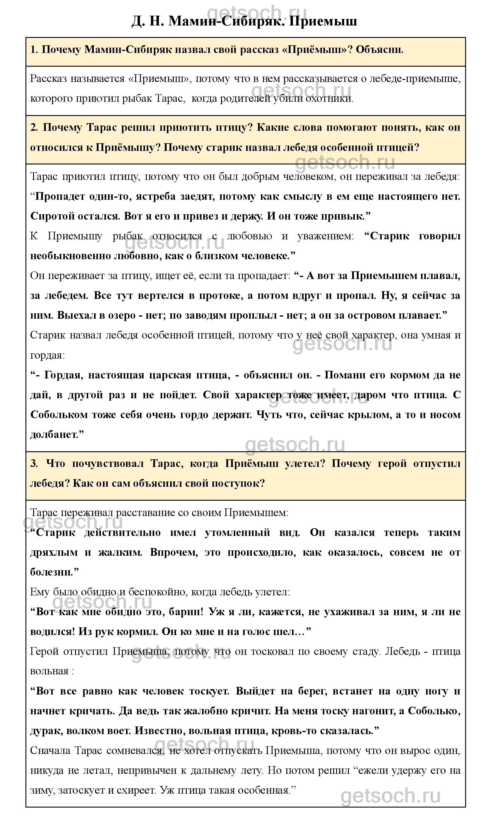 Почему Тарас решил приютить птицу? Какие слова помогают понять, как он относился к Приёмышу? Почему старик назвал лебедя особенной птицей?
