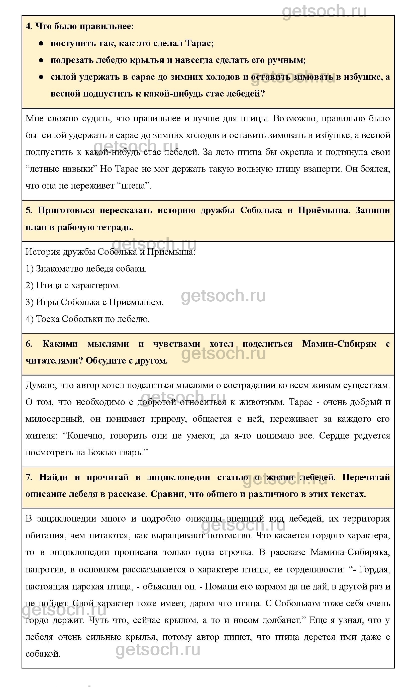 Найди и прочитай в энциклопедии статью о жизни лебедей. Перечитай описание лебедя в рассказе. Сравни, что общего и различного в этих текстах.