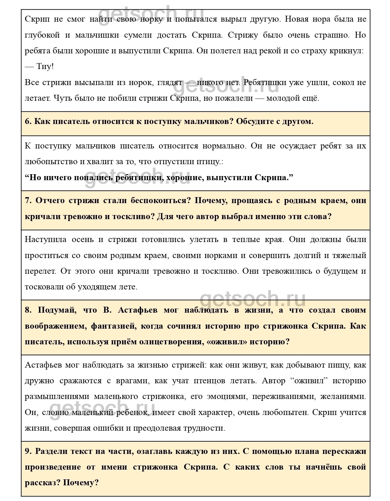 Подумай, что В. Астафьев мог наблюдать в жизни, а что создал своим воображением, фантазией, когда сочинял историю про стрижонка Скрипа. Как писатель, используя приём олицетворения, «оживил» историю?