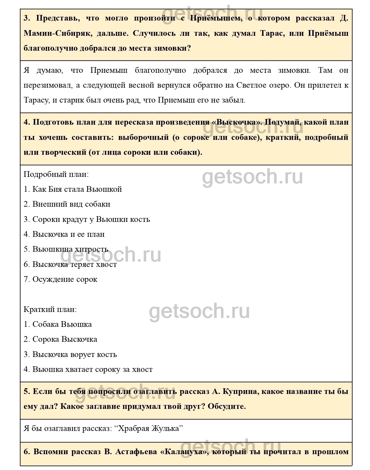 Подготовь план для пересказа произведения «Выскочка». Подумай, какой план ты хочешь составить: выборочный (о сороке или собаке), краткий, подробный или творческий (от лица сороки или собаки).