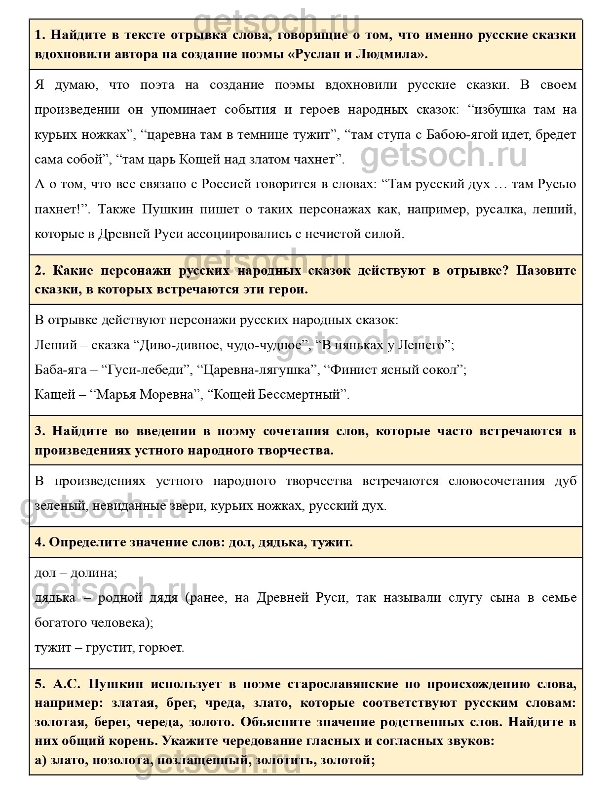 1. Найдите в тексте отрывка слова, говорящие о том, что именно русские сказки вдохновили автора на создание поэмы «Руслан и Людмила».