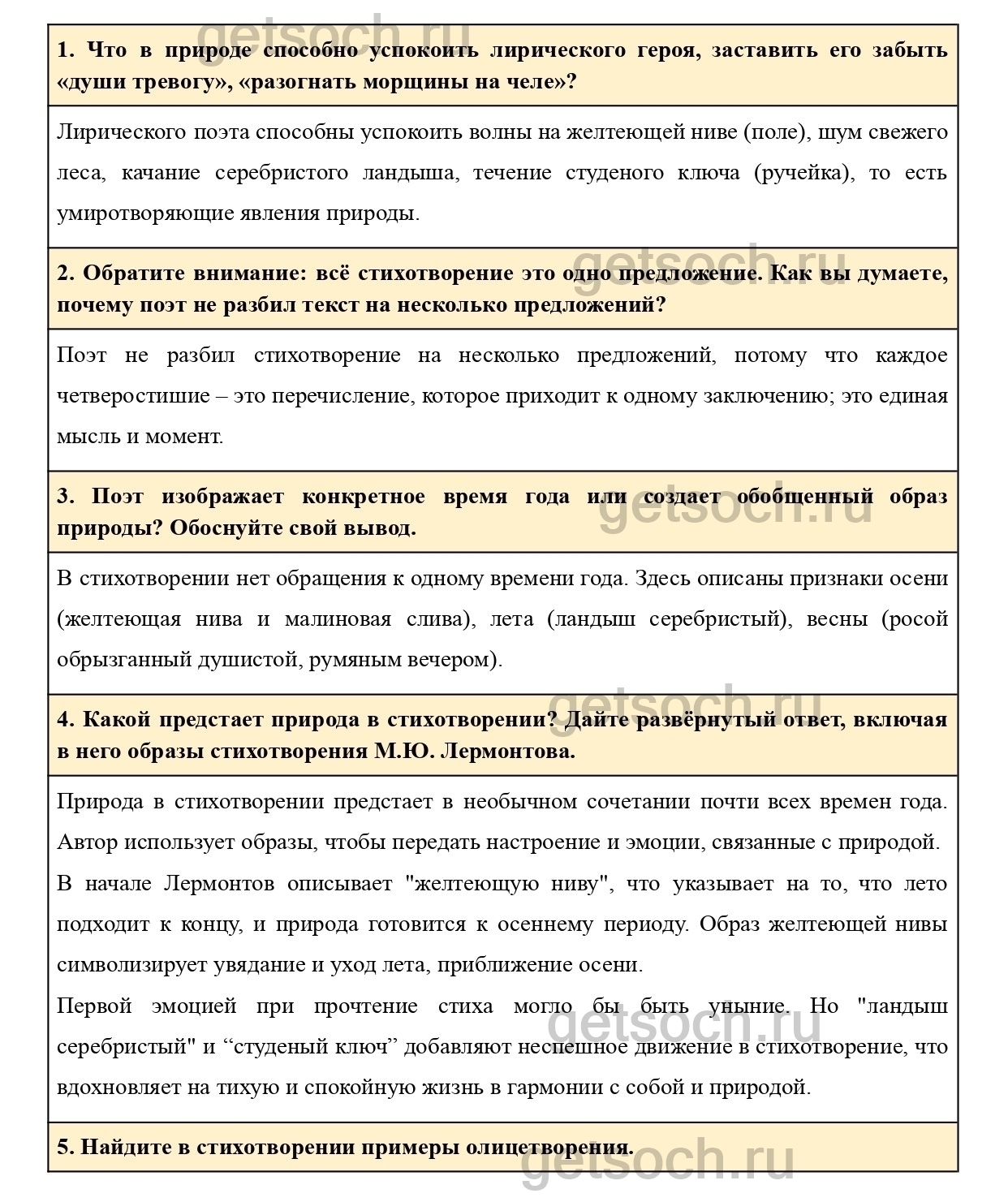 4. Какой предстает природа в стихотворении? Дайте развёрнутый ответ, включая в него образы стихотворения М.Ю. Лермонтова.