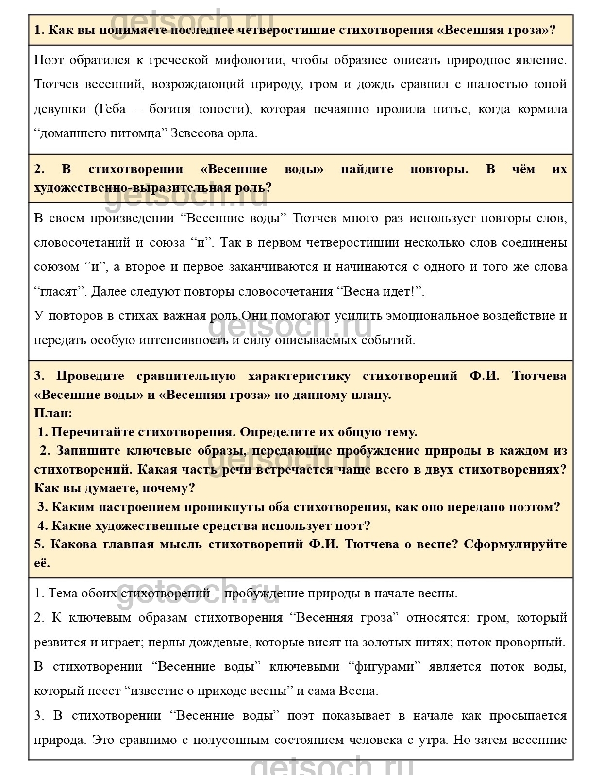 3. Проведите сравнительную характеристику стихотворений Ф.И. Тютчева «Весенние воды» и «Весенняя гроза» по данному плану.