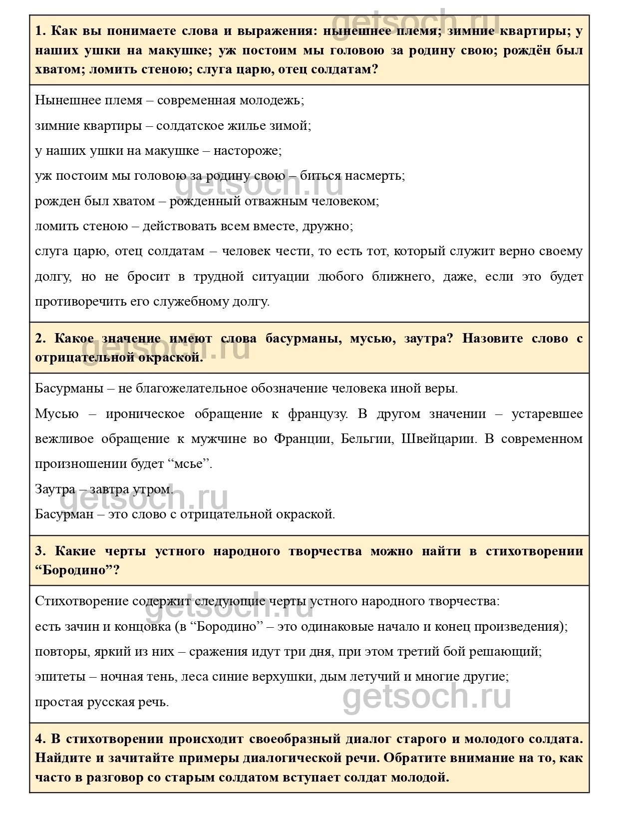 3. Какие черты устного народного творчества можно найти в стихотворении “Бородино”?