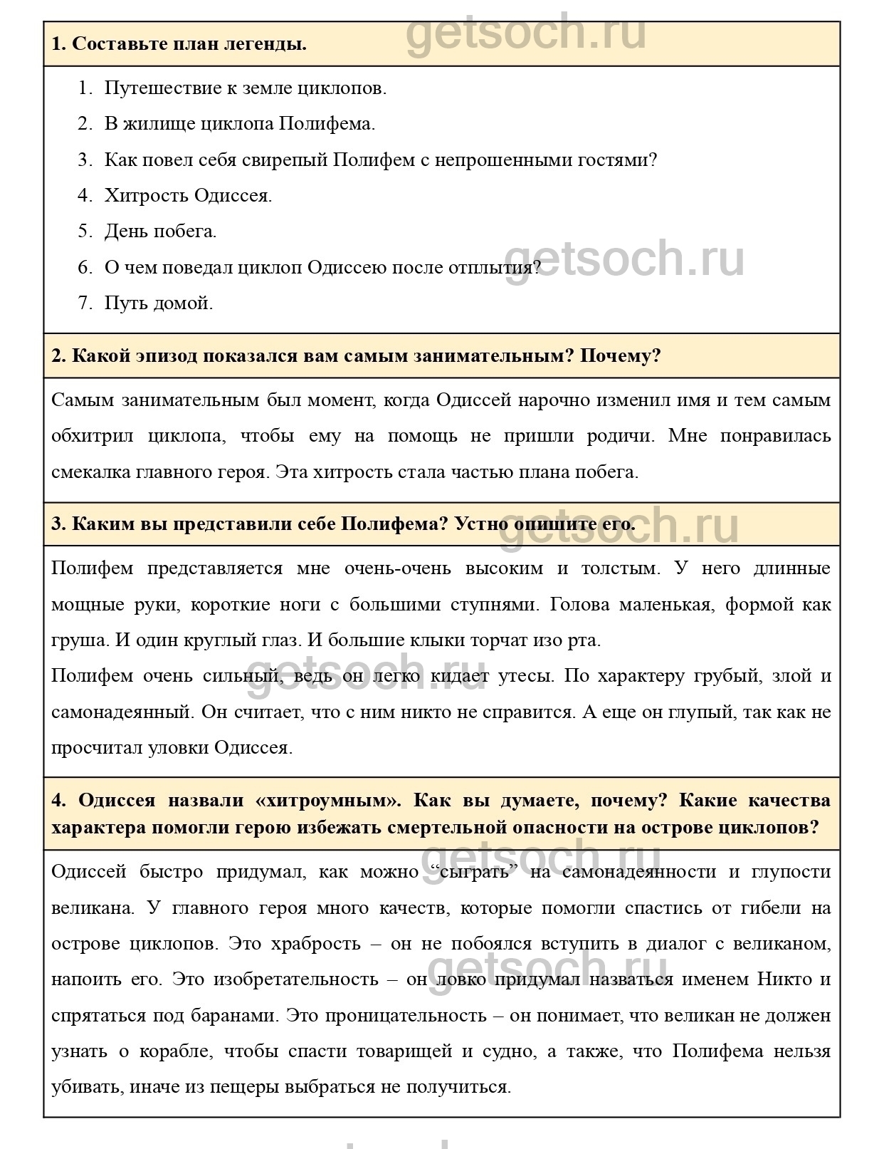 4. Одиссея назвали «хитроумным». Как вы думаете, почему? Какие качества характера помогли герою избежать смертельной опасности на острове циклопов?