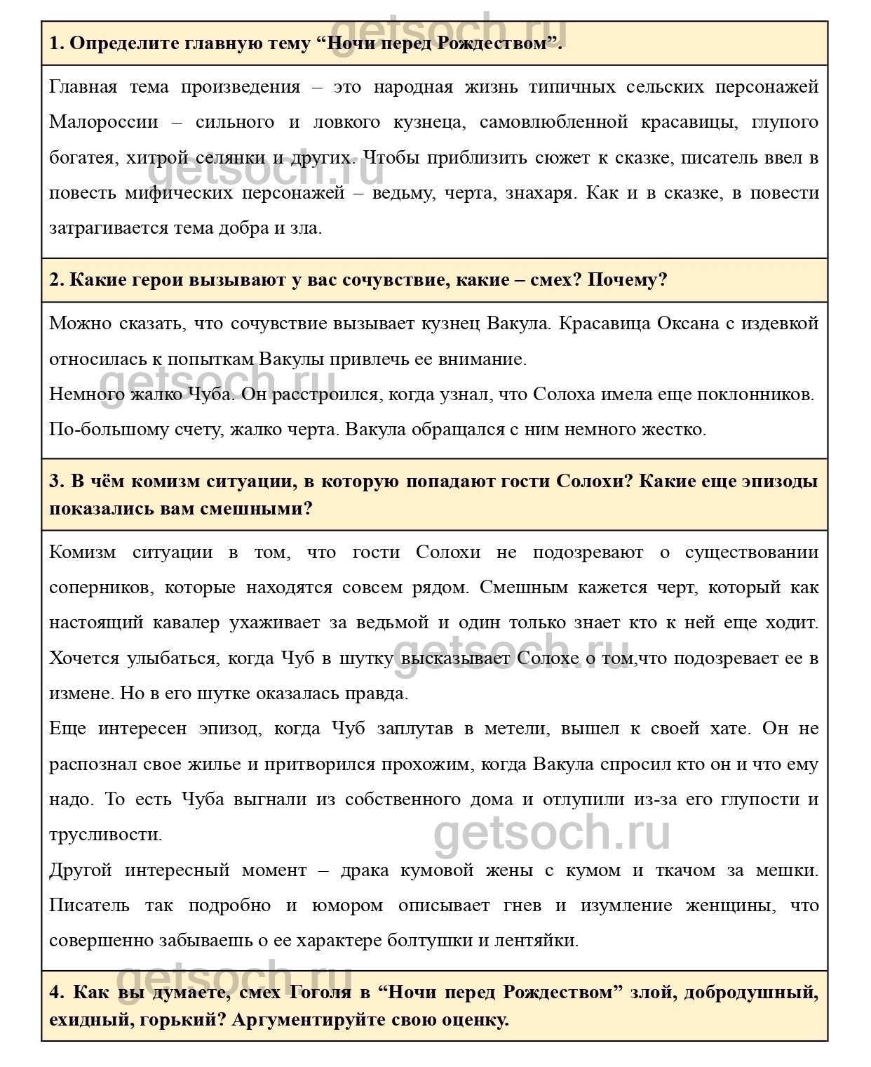 4. Как вы думаете, смех Гоголя в “Ночи перед Рождеством” злой, добродушный, ехидный, горький? Аргументируйте свою оценку.