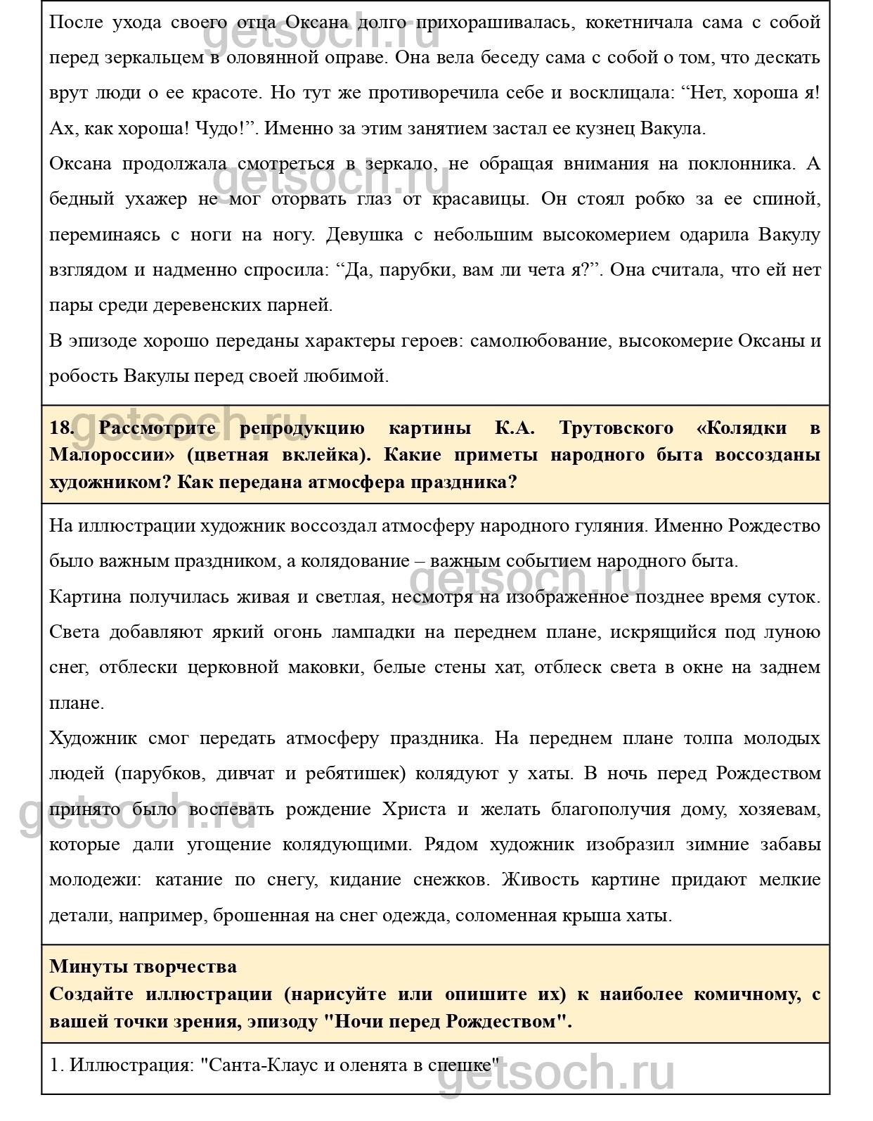 18. Рассмотрите репродукцию картины К.А. Трутовского «Колядки в Малороссии» (цветная вклейка). Какие приметы народного быта воссозданы художником? Как передана атмосфера праздника?