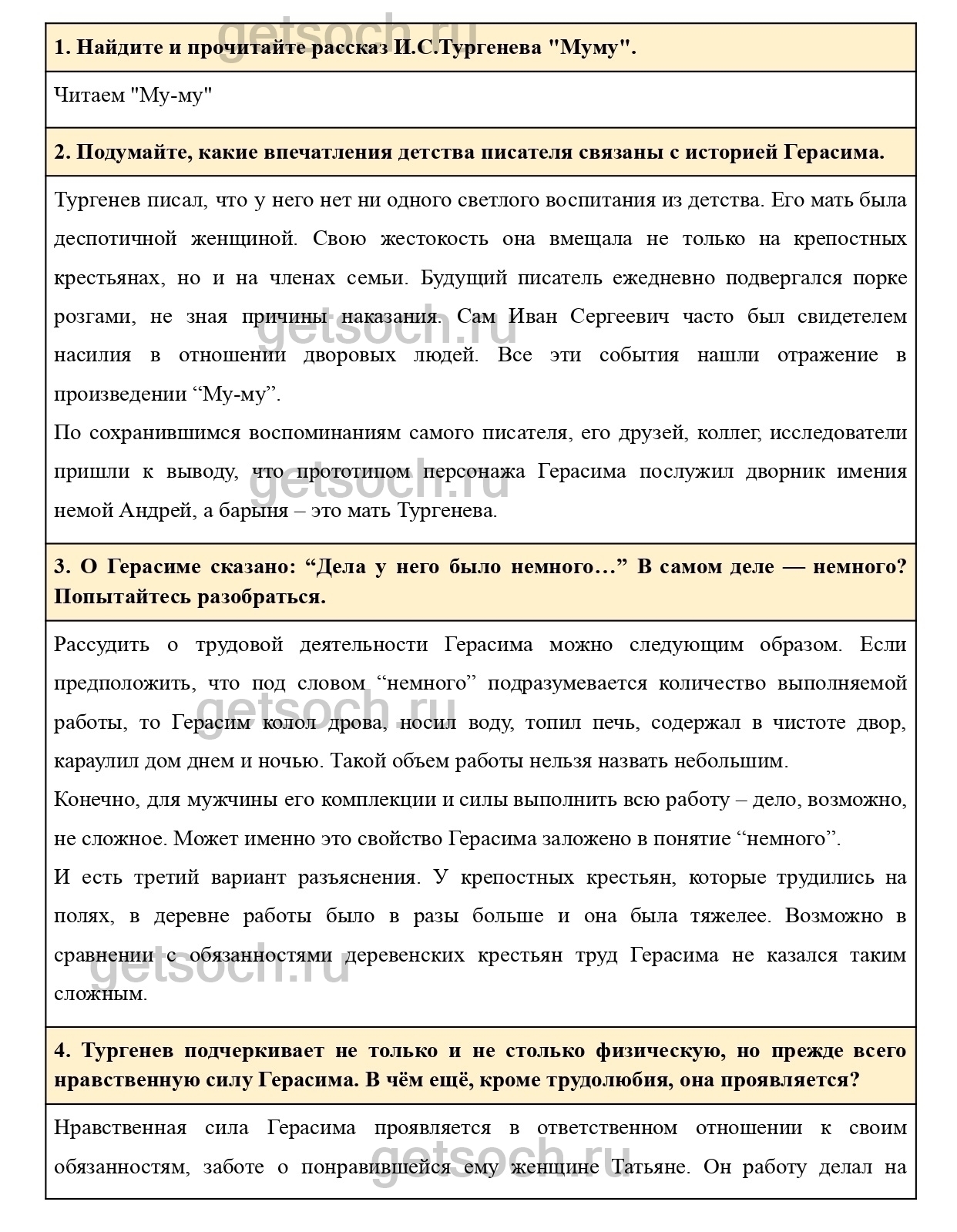 3. О Герасиме сказано: “Дела у него было немного…” В самом деле — немного? Попытайтесь разобраться.