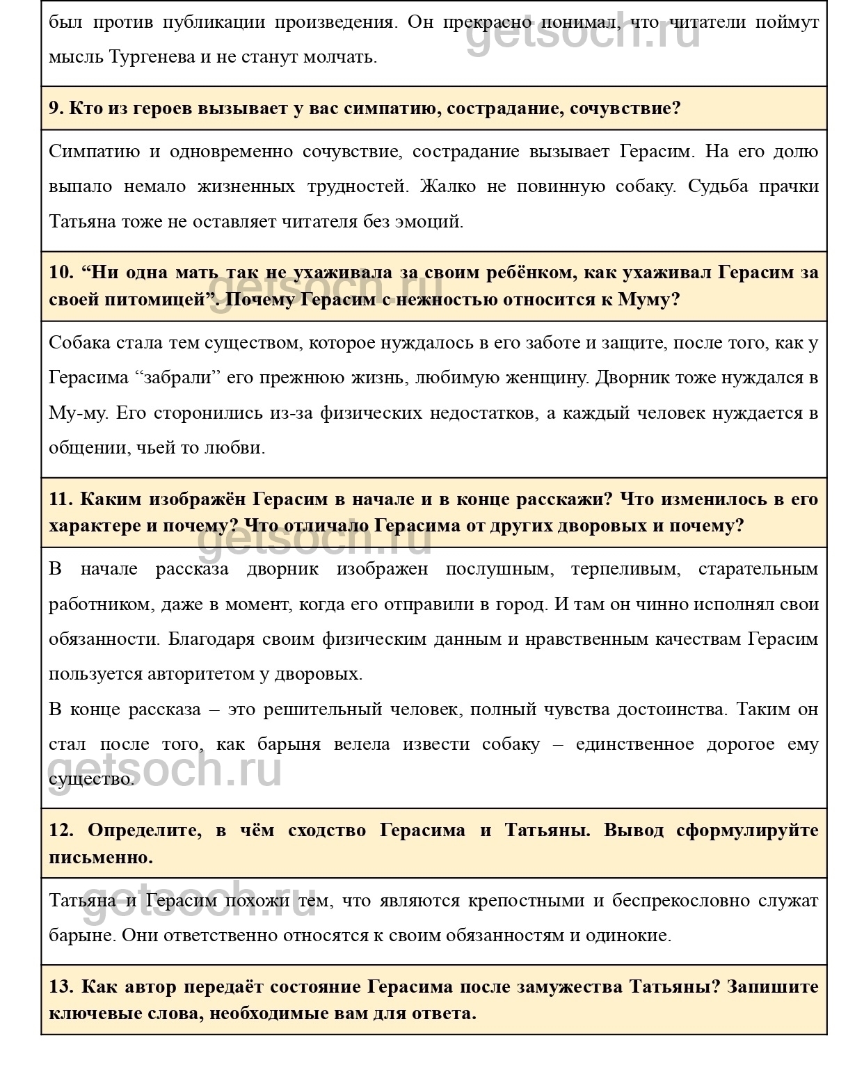 11. Каким изображён Герасим в начале и в конце расскажи? Что изменилось в его характере и почему? Что отличало Герасима от других дворовых и почему?