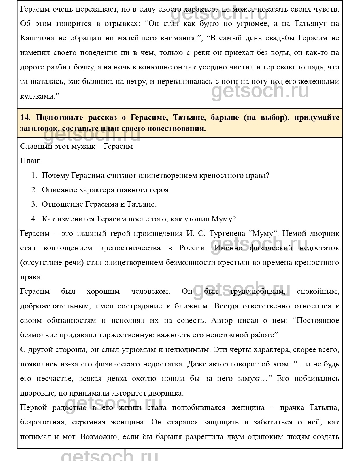 14. Подготовьте рассказ о Герасиме, Татьяне, барыне (на выбор), придумайте заголовок, составьте план своего повествования.
