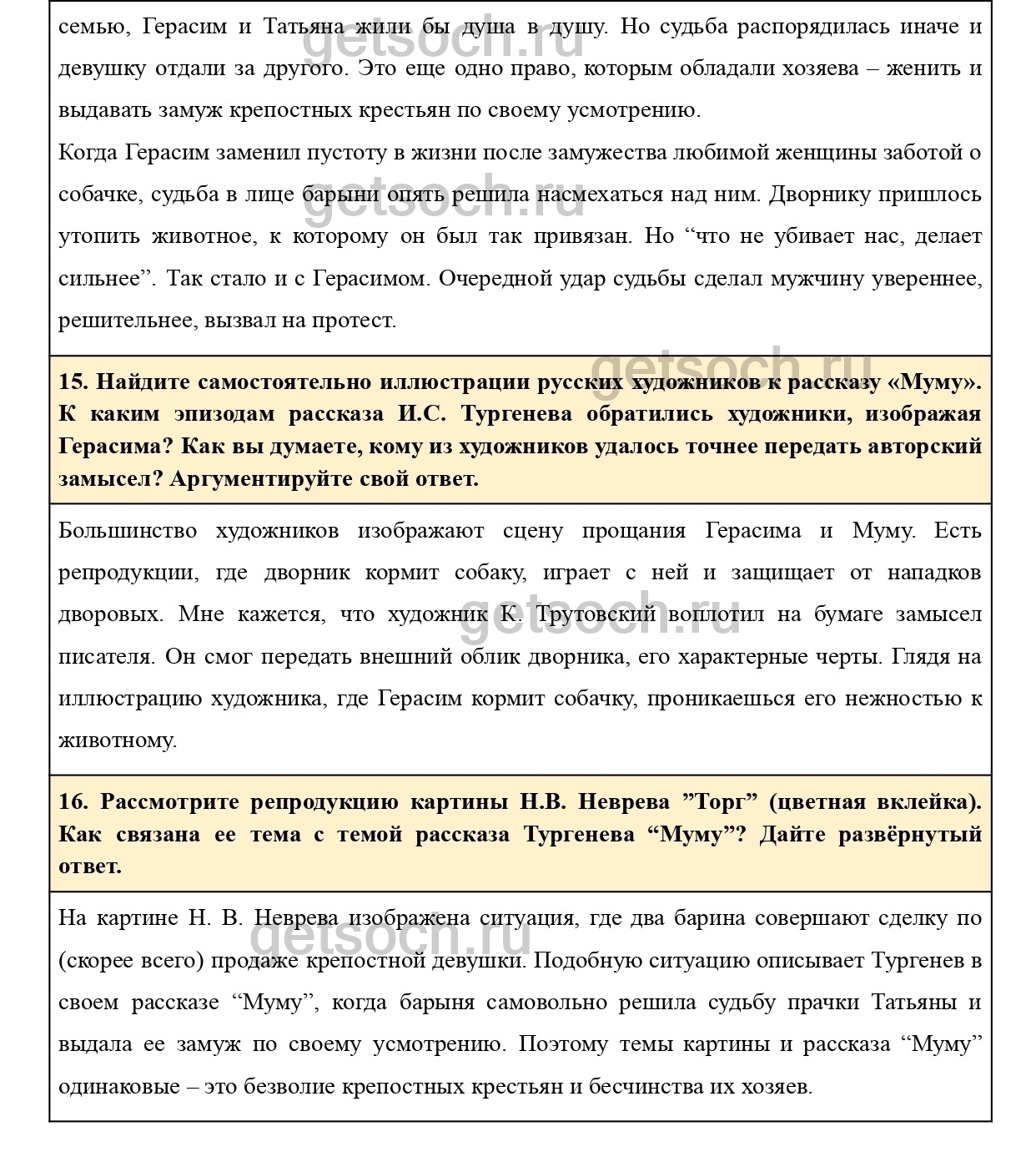 16. Рассмотрите репродукцию картины Н.В. Неврева ”Торг” (цветная вклейка). Как связана ее тема с темой рассказа Тургенева “Муму”? Дайте развёрнутый ответ.