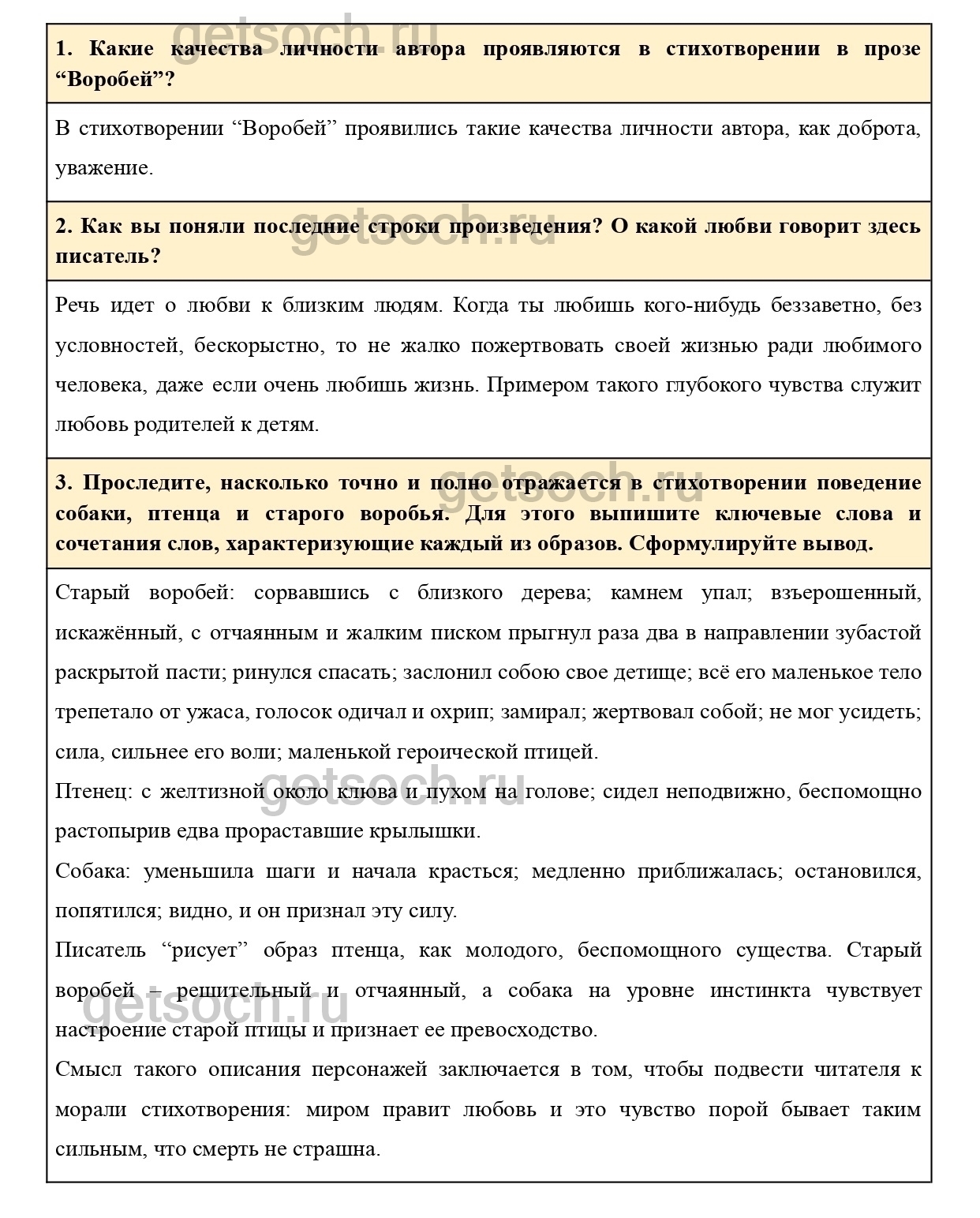 1. Какие качества личности автора проявляются в стихотворении в прозе “Воробей”?
