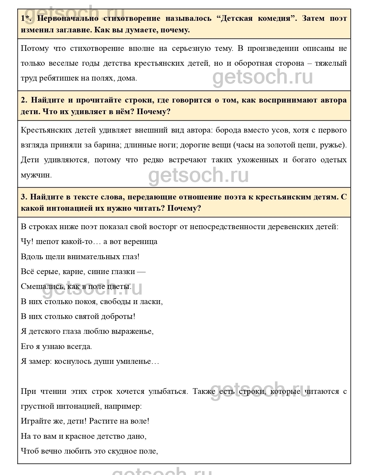 3. Найдите в тексте слова, передающие отношение поэта к крестьянским детям. С какой интонацией их нужно читать? Почему?