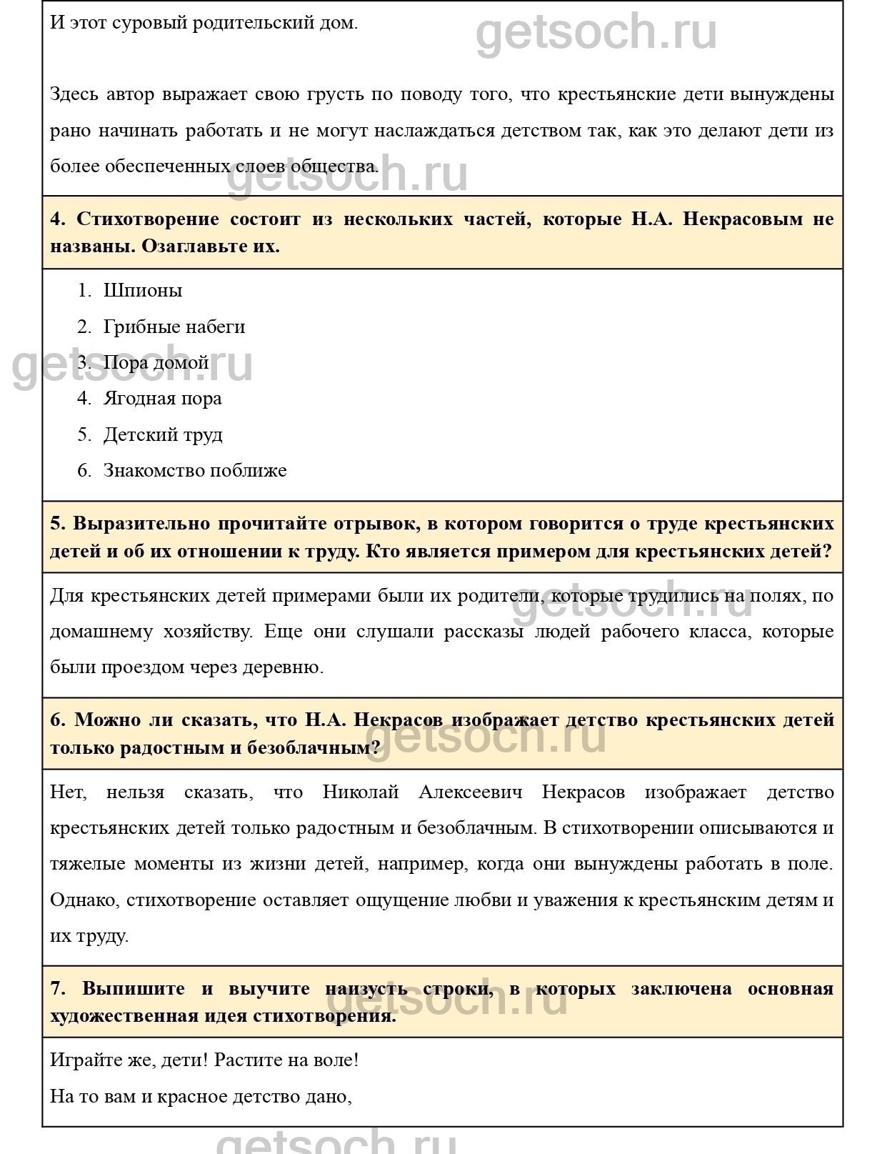 6. Можно ли сказать, что Н.А. Некрасов изображает детство крестьянских детей только радостным и безоблачным?