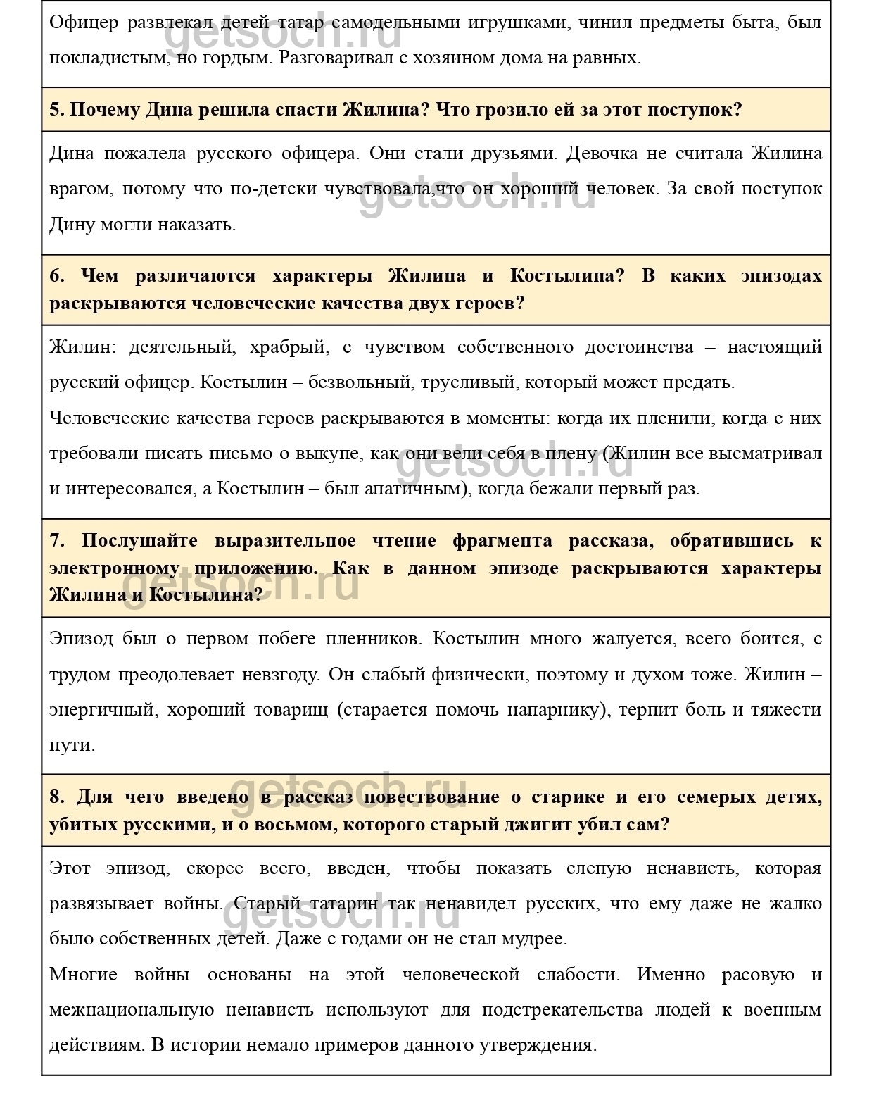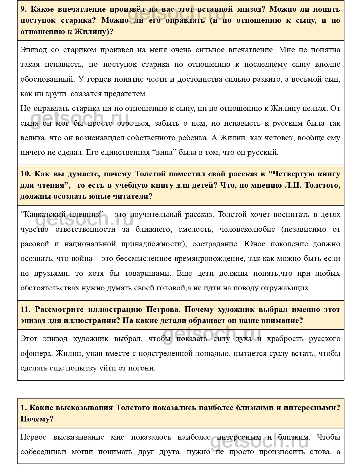 9. Какое впечатление произвёл на вас этот вставной эпизод? Можно ли понять поступок старика? Можно ли его оправдать (и по отношению к сыну, и по отношению к Жилину)?