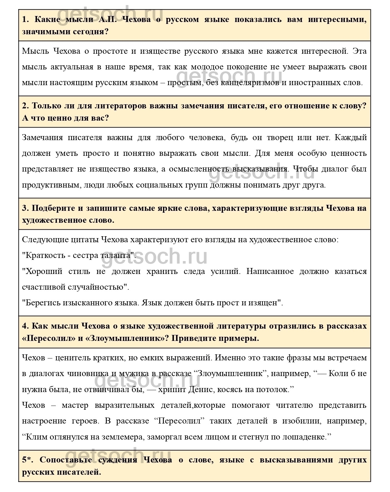 5*. Сопоставьте суждения Чехова о слове, языке с высказываниями других русских писателей.