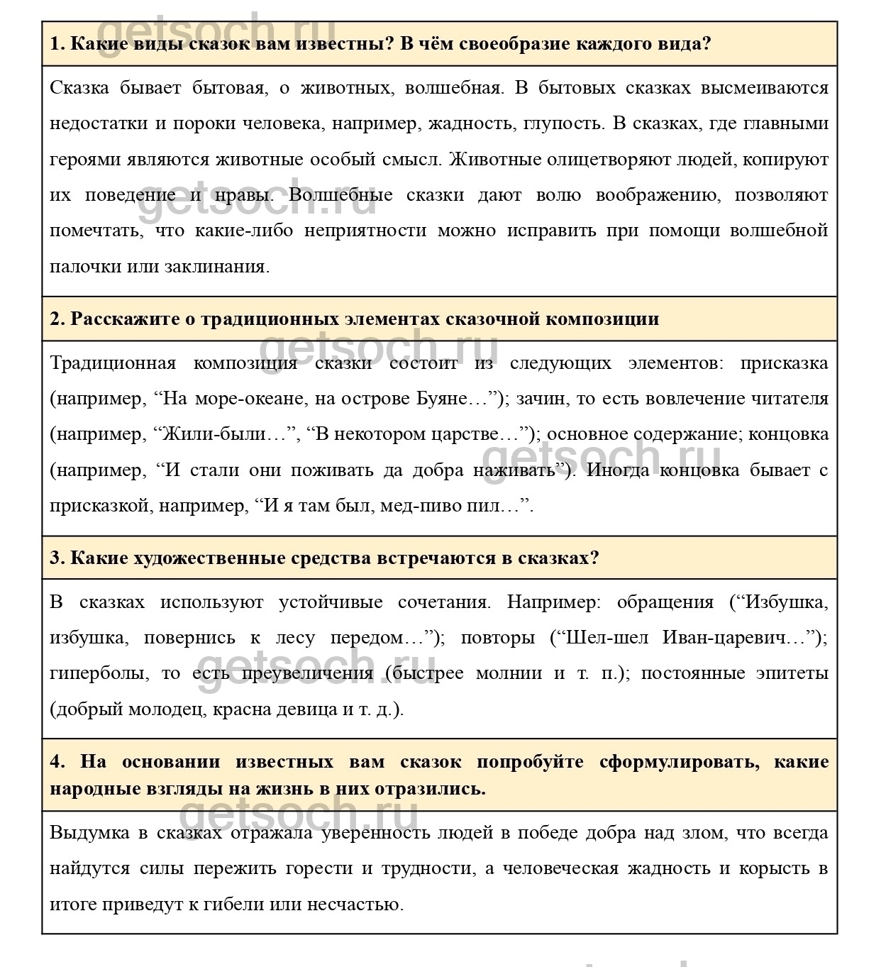 4. На основании известных вам сказок попробуйте сформулировать, какие народные взгляды на жизнь в них отразились.