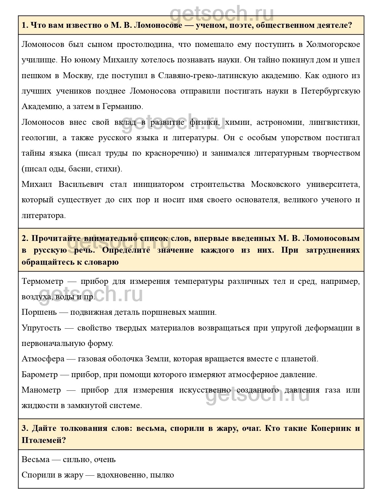 1. Что вам известно о М. В. Ломоносове — ученом, поэте, общественном деятеле?