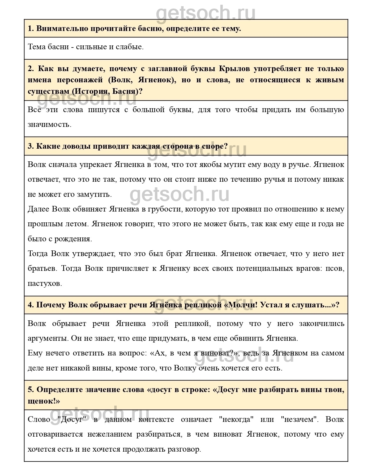 4. Почему Волк обрывает речи Ягнёнка репликой «Молчи! Устал я слушать…»?