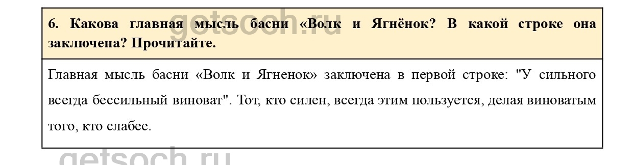 6. Какова главная мысль басни «Волк и Ягнёнок? В какой строке она заключена? Прочитайте.
