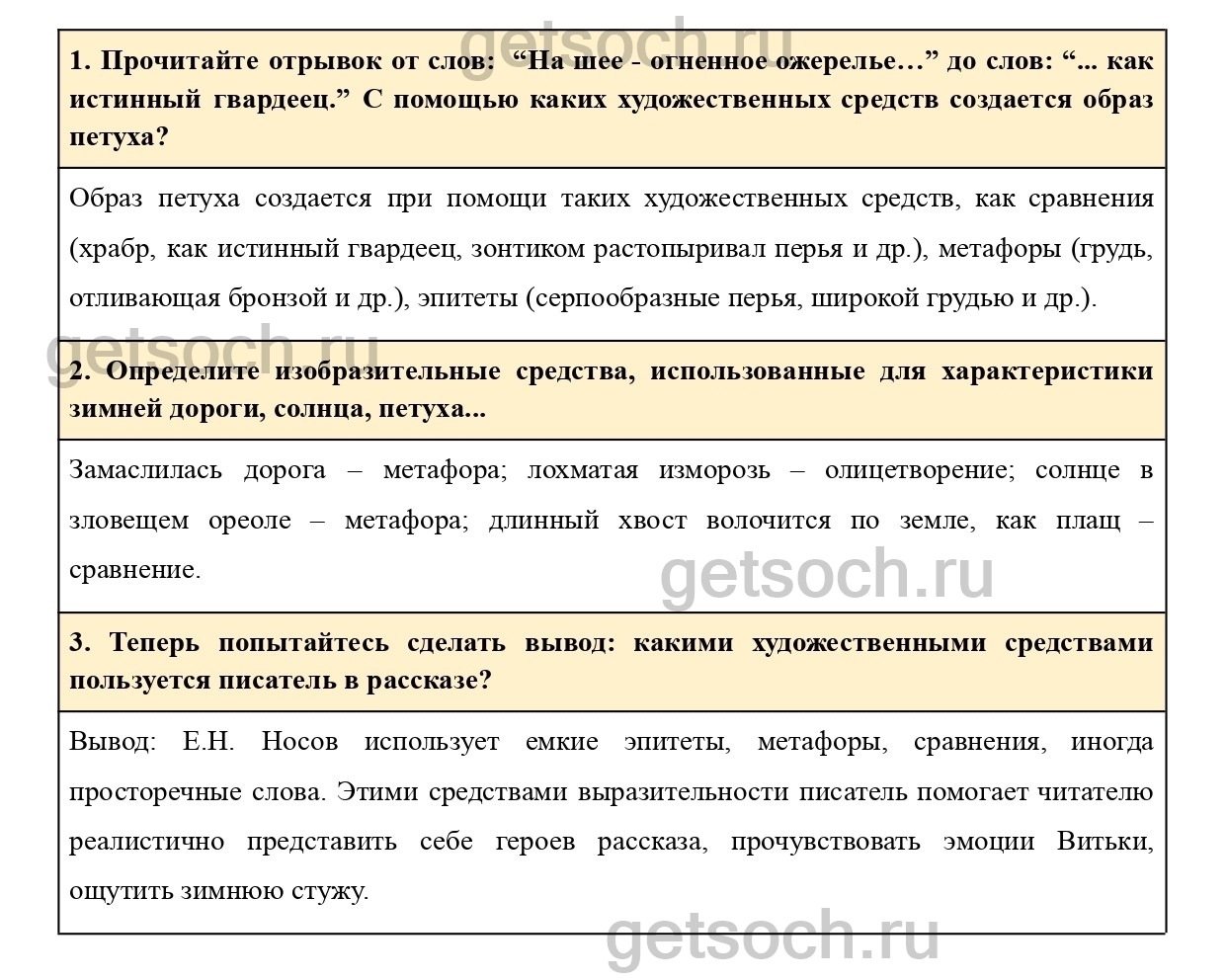 1. Прочитайте отрывок от слов: “На шее – огненное ожерелье…” до слов: “… как истинный гвардеец.” С помощью каких художественных средств создается образ петуха?
