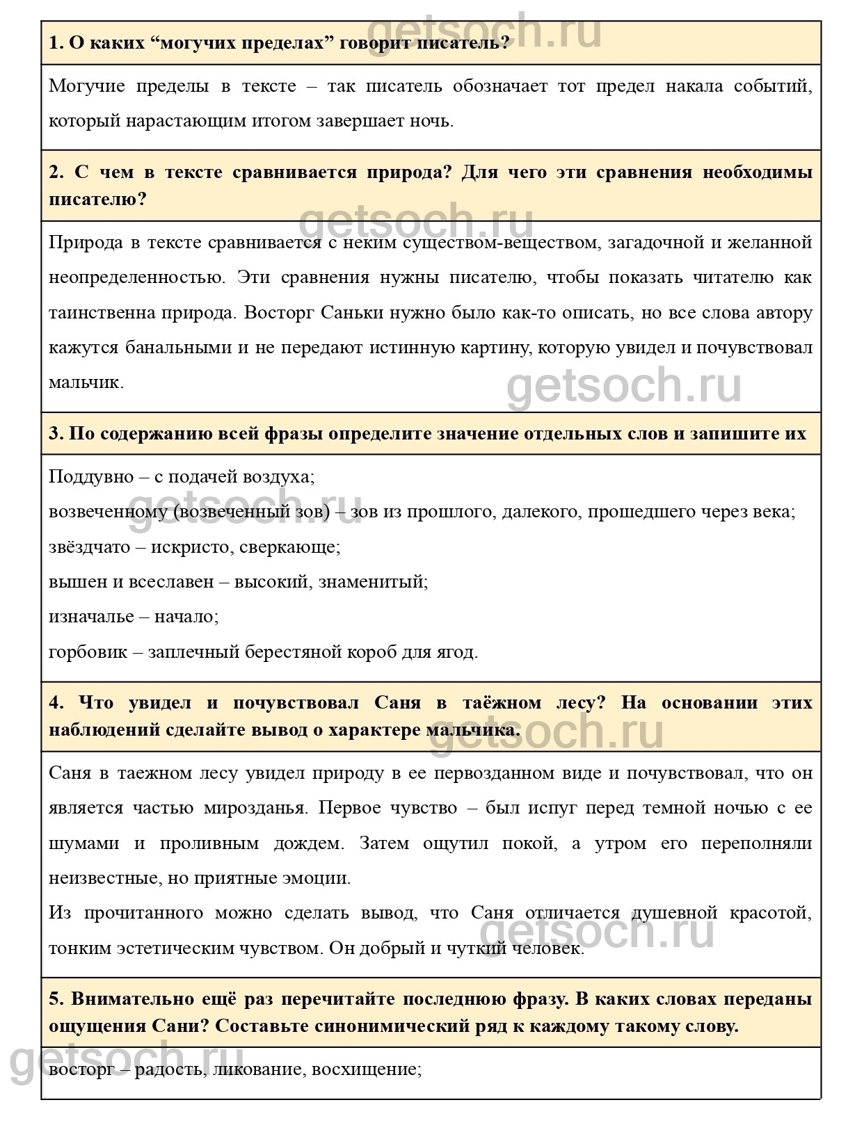 4. Что увидел и почувствовал Саня в таёжном лесу? На основании этих наблюдений сделайте вывод о характере мальчика.