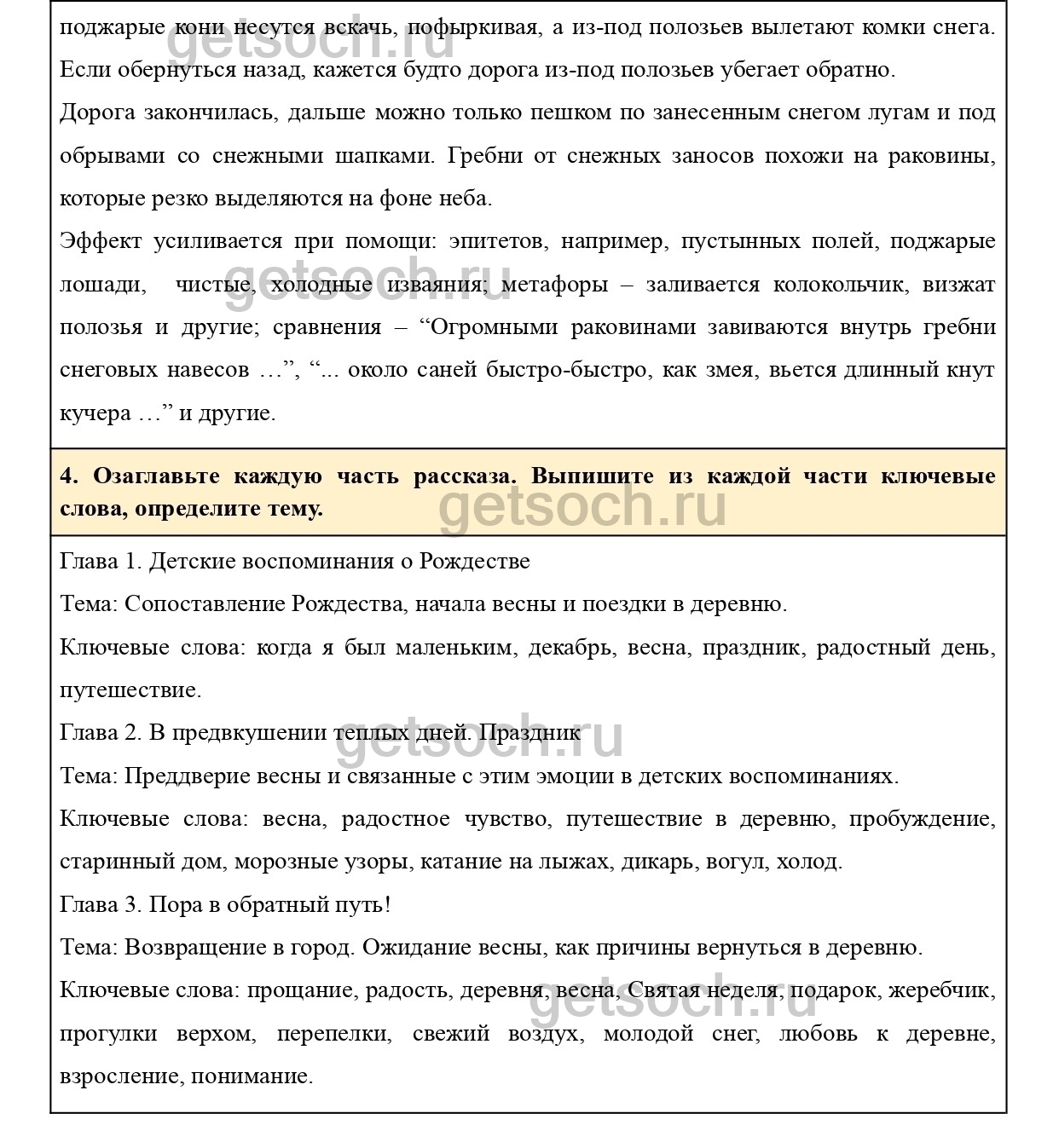 4. Озаглавьте каждую часть рассказа. Выпишите из каждой части ключевые слова, определите тему.