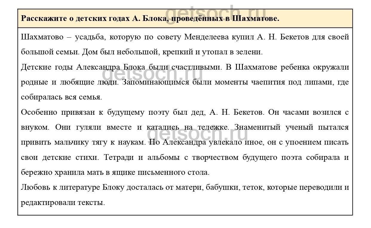 Расскажите о детских годах А. Блока, проведённых в Шахматове.