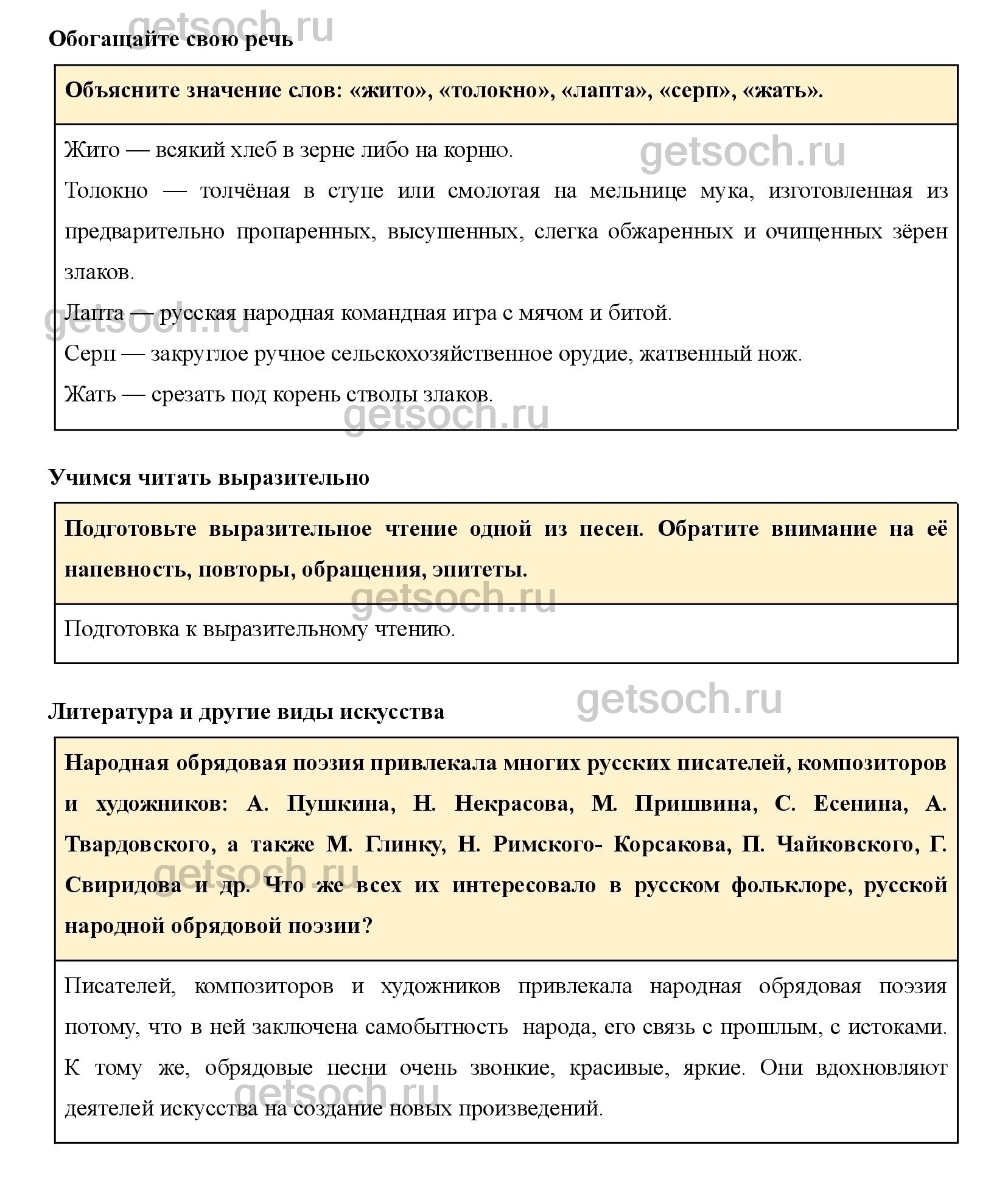 Подготовьте выразительное чтение одной из песен. Обратите внимание на её напевность, повторы, обращения, эпитеты.