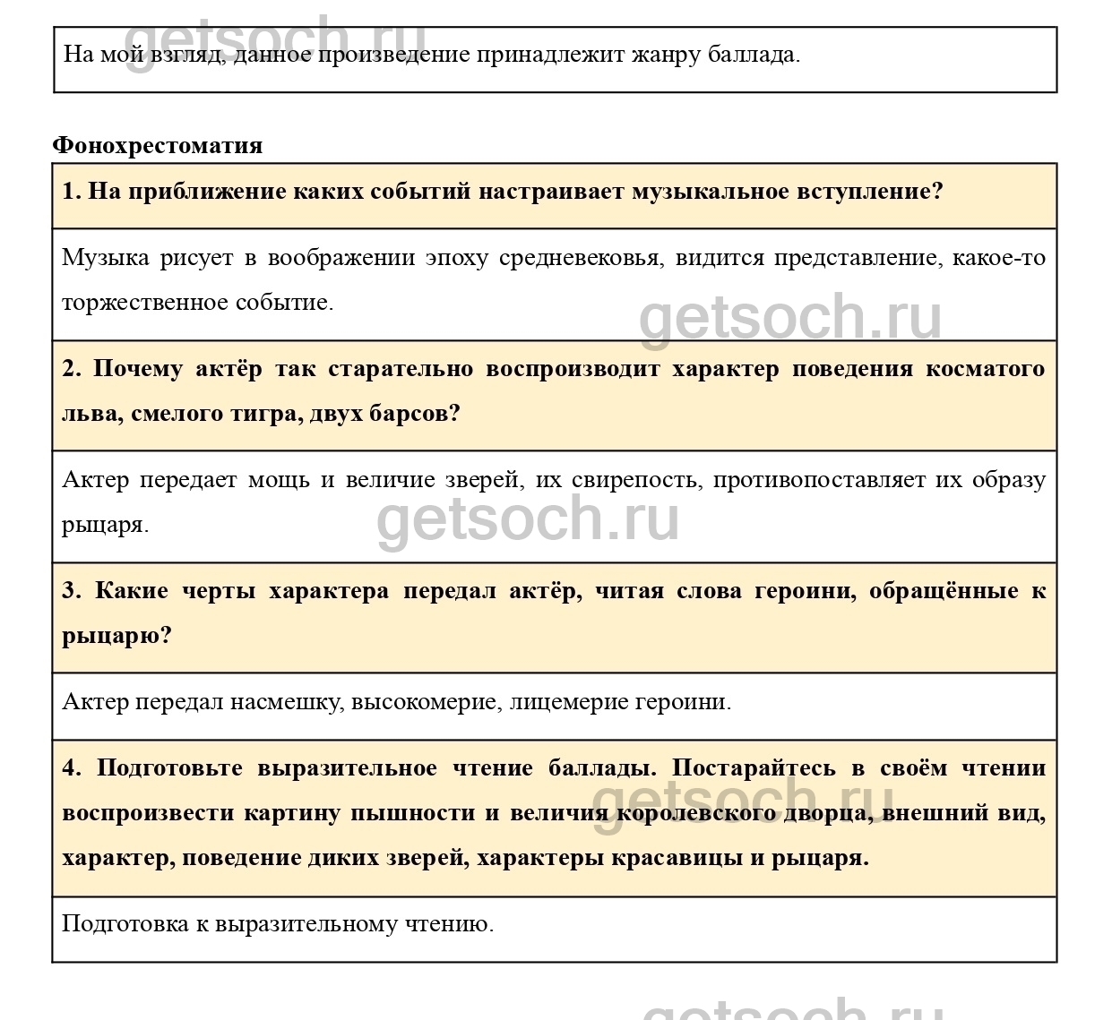 Подготовьте выразительное чтение баллады. Постарайтесь в своём чтении воспроизвести картину пышности и величия королевского дворца, внешний вид, характер, поведение диких зверей, характеры красавицы и рыцаря.