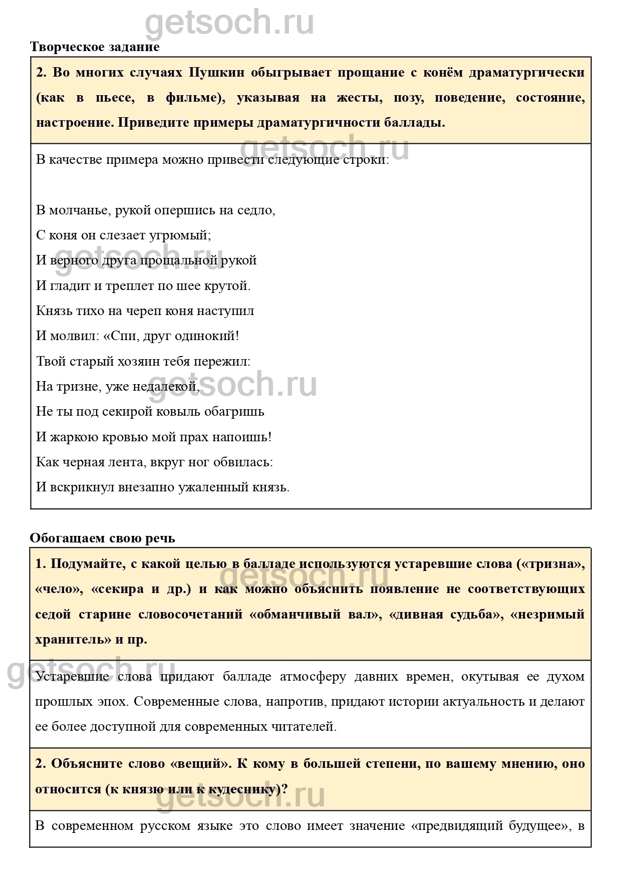 Подумайте, с какой целью в балладе используются устаревшие слова («тризна», «чело», «секира и др.) и как можно объяснить появление не соответствующих седой старине словосочетаний «обманчивый вал», «дивная судьба», «незримый хранитель» и пр.