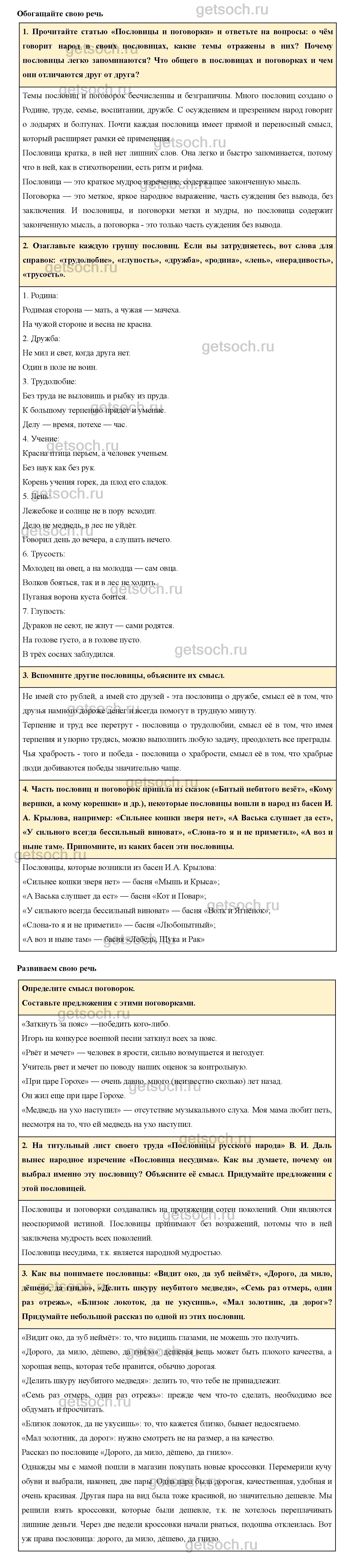 Прочитайте статью «Пословицы и поговорки» и ответьте на вопросы: о чём говорит народ в своих пословицах, какие темы отражены в них? Почему пословицы легко запоминаются? Что общего в пословицах и поговорках и чем они отличаются друг от друга?