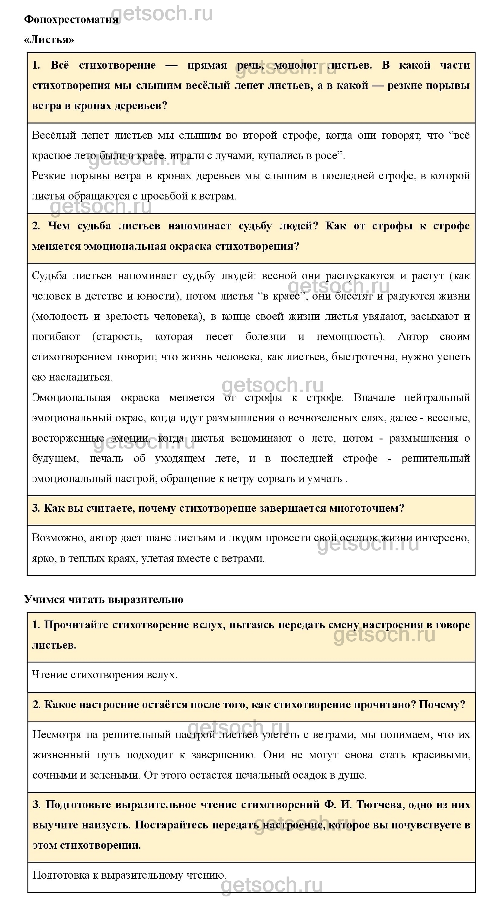 Прочитайте стихотворение вслух, пытаясь передать смену настроения в говоре листьев.