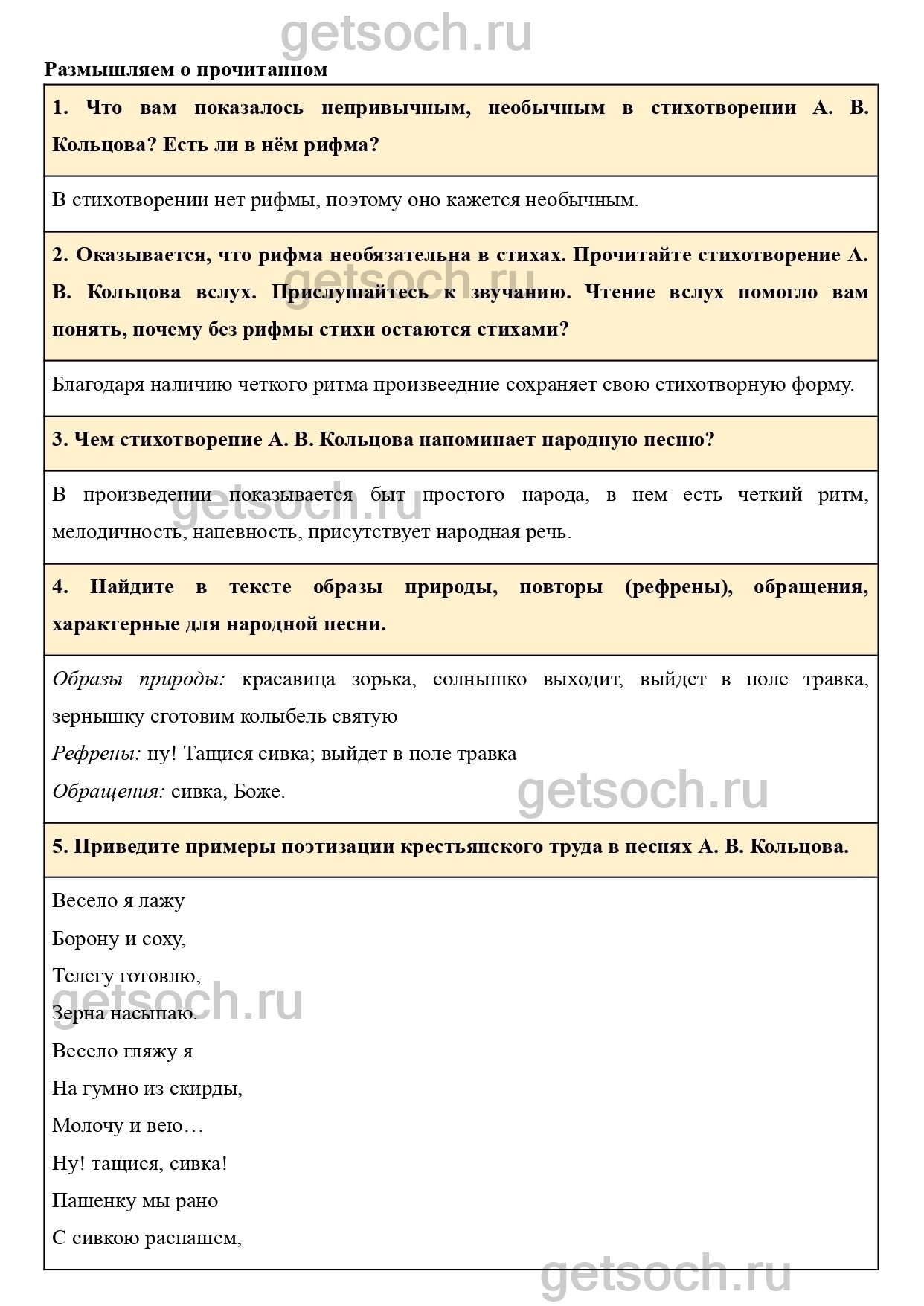 Приведите примеры поэтизации крестьянского труда в песнях А. В. Кольцова.