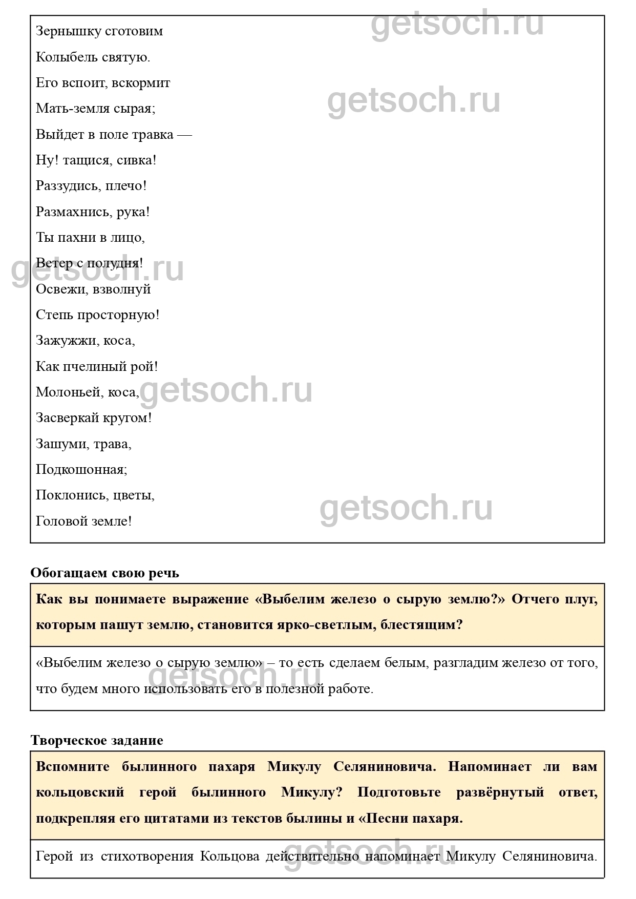 Вспомните былинного пахаря Микулу Селяниновича. Напоминает ли вам кольцовский герой былинного Микулу? Подготовьте развёрнутый ответ, подкрепляя его цитатами из текстов былины и «Песни пахаря.