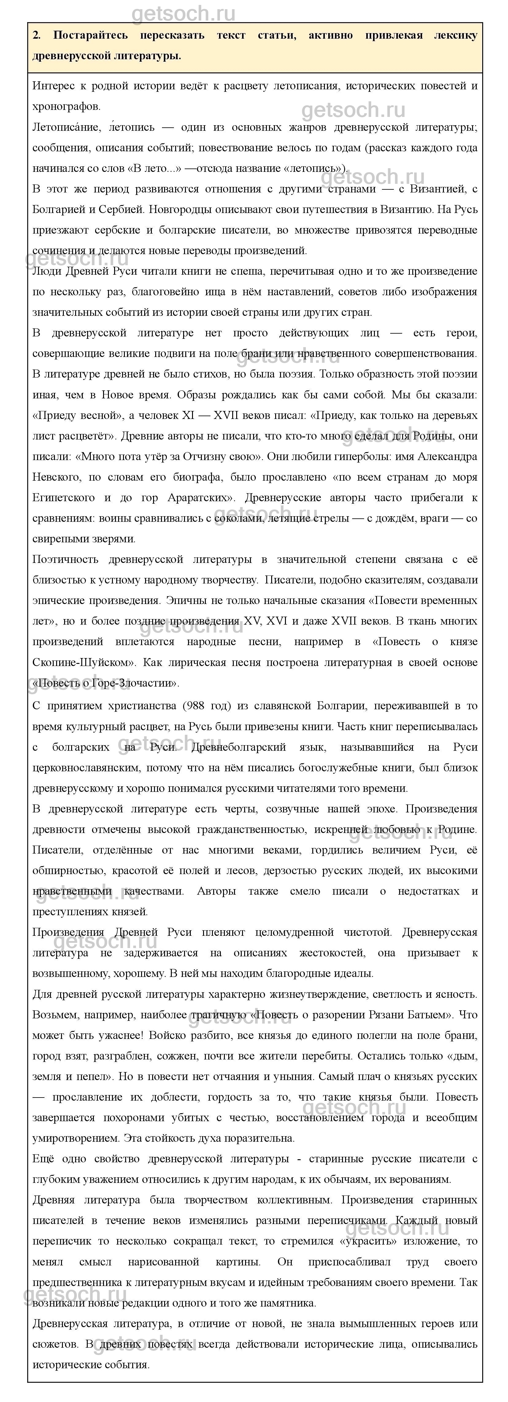 Постарайтесь пересказать текст статьи, активно привлекая лексику древнерусской литературы.