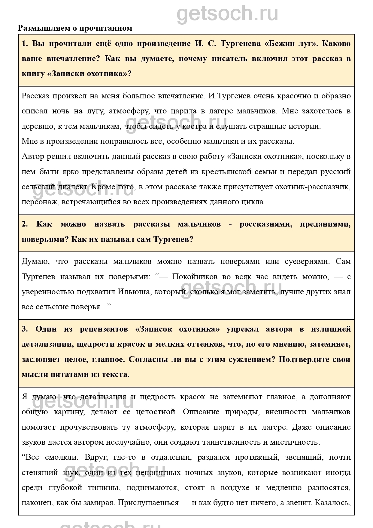 Вы прочитали ещё одно произведение И. С. Тургенева «Бежин луг». Каково ваше впечатление? Как вы думаете, почему писатель включил этот рассказ в книгу «Записки охотника»?