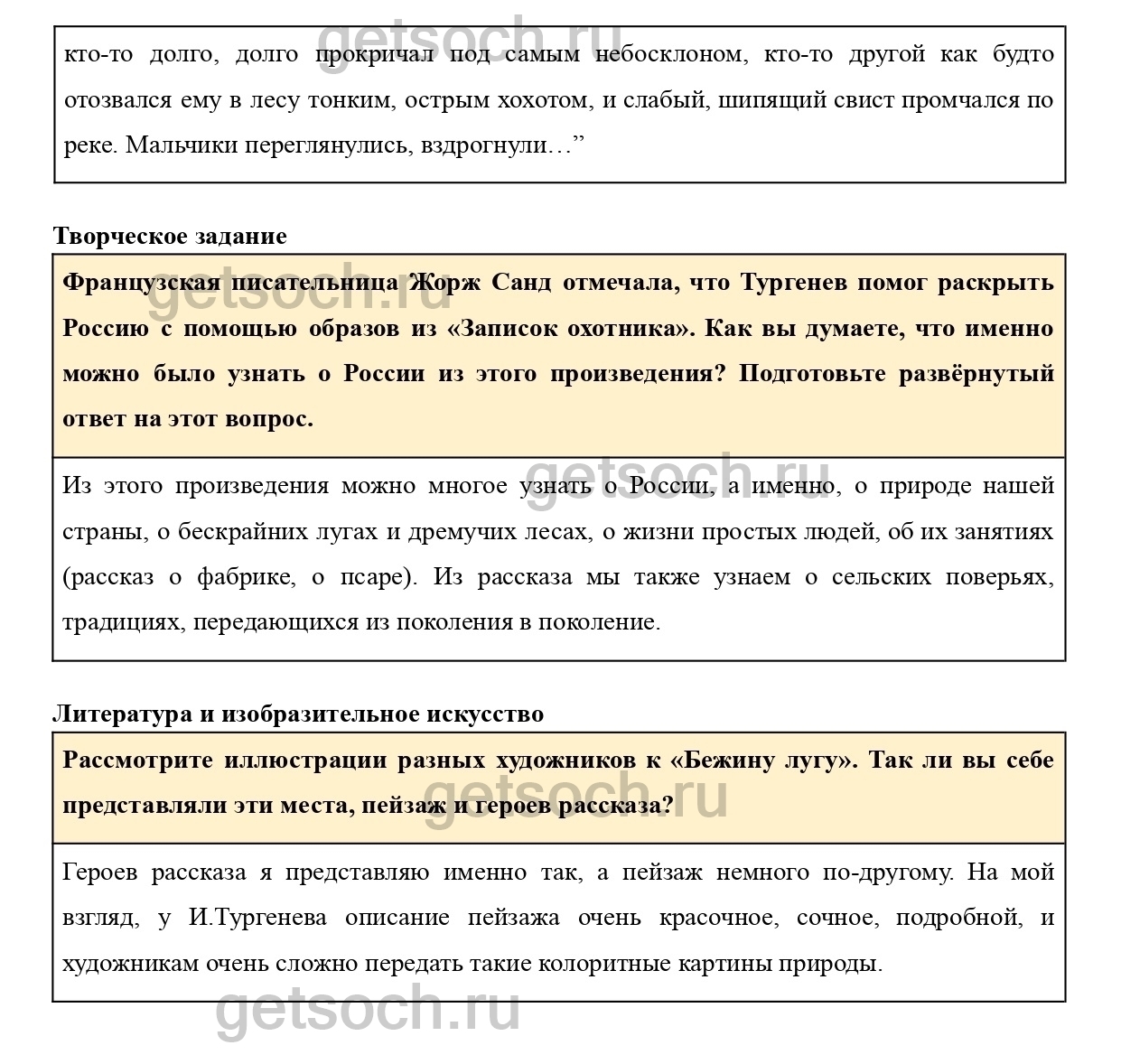 Французская писательница Жорж Санд отмечала, что Тургенев помог раскрыть Россию с помощью образов из «Записок охотника». Как вы думаете, что именно можно было узнать о России из этого произведения? Подготовьте развёрнутый ответ на этот вопрос.