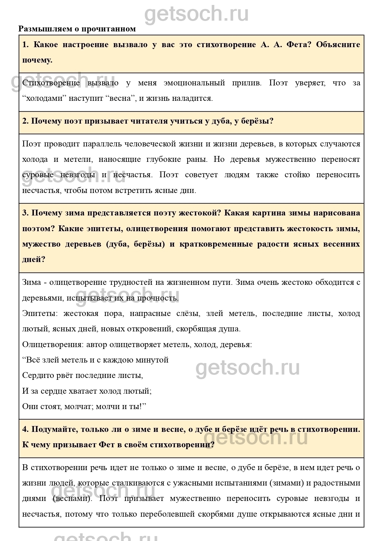 Подумайте, только ли о зиме и весне, о дубе и берёзе идёт речь в стихотворении. К чему призывает Фет в своём стихотворении?