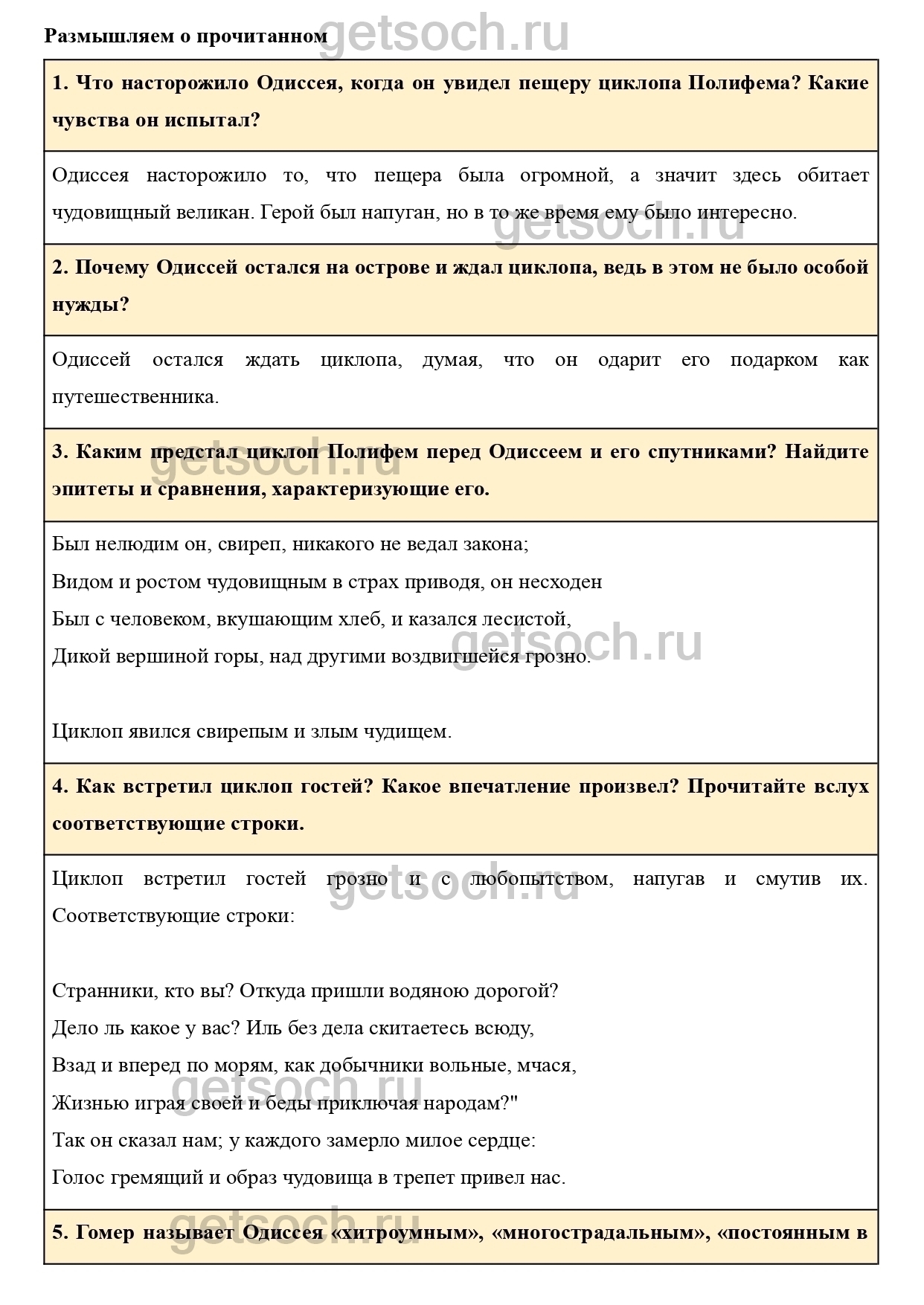 Как встретил циклоп гостей? Какое впечатление произвел? Прочитайте вслух соответствующие строки.