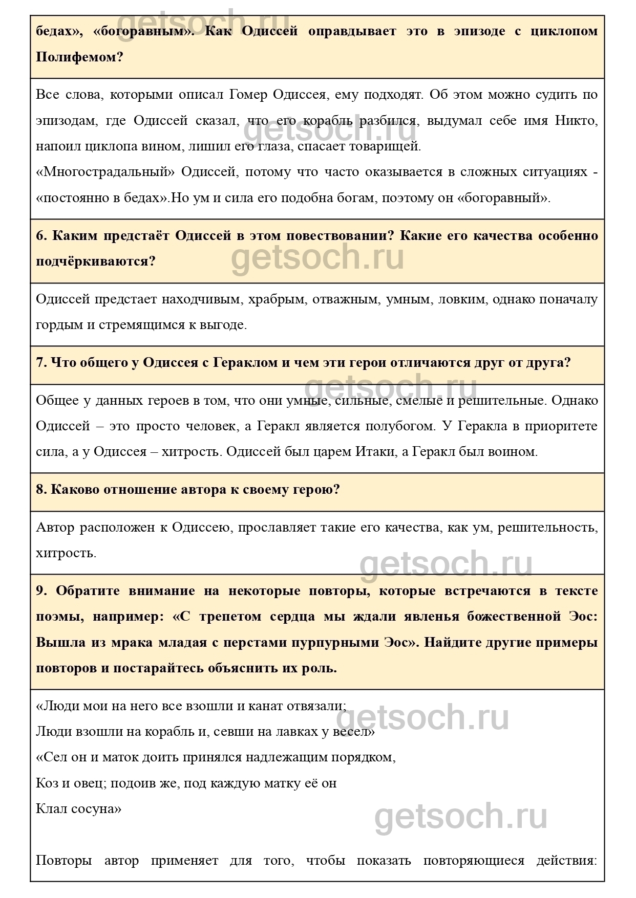 Обратите внимание на некоторые повторы, которые встречаются в тексте поэмы, например: «С трепетом сердца мы ждали явленья божественной Эос: Вышла из мрака младая с перстами пурпурными Эос». Найдите другие примеры повторов и постарайтесь объяснить их роль.